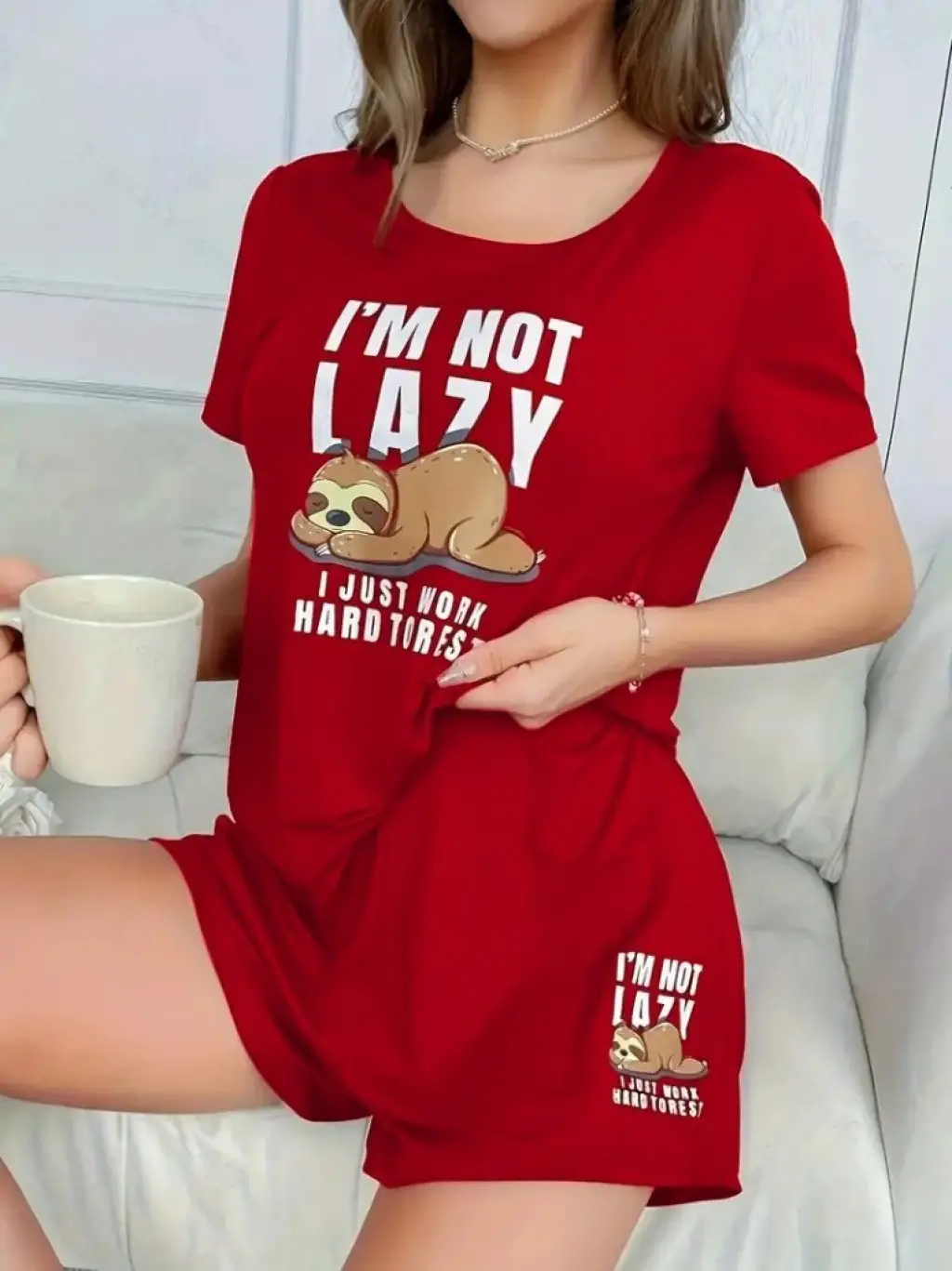 Kadın Kısa Kollu Bisiklet Yaka Baskılı Viskon Bluz Ve şort Ikili Takım