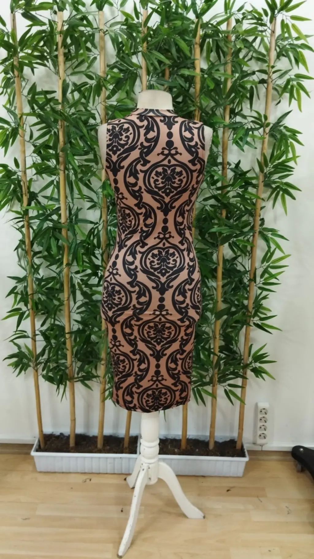 Omarı Trend Desenli Kadın Kolsuz Elbise
