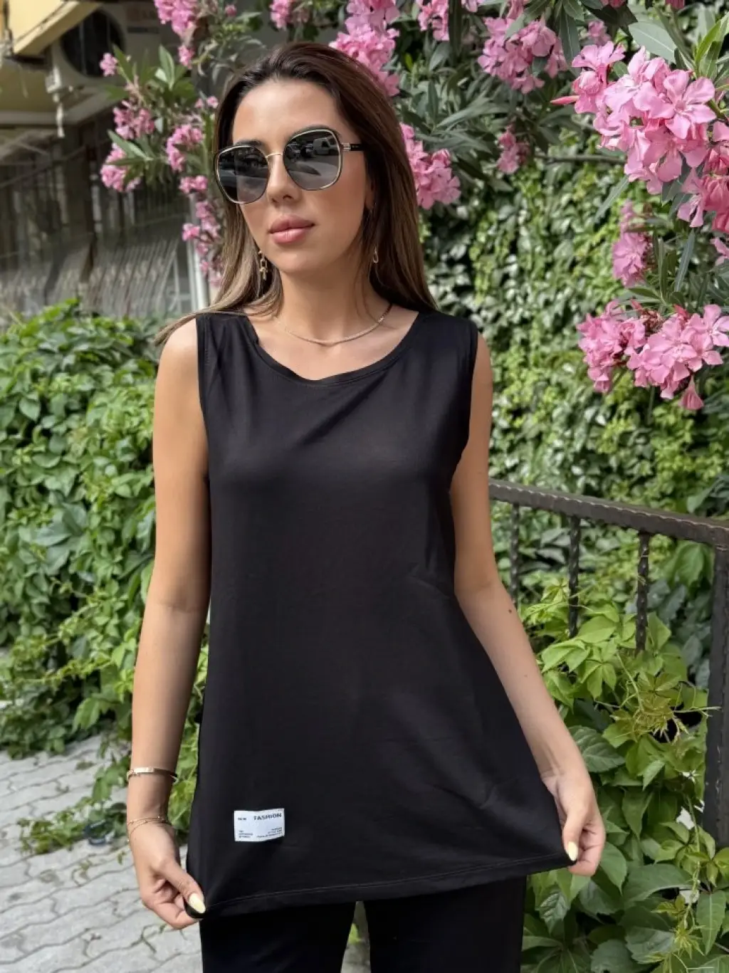 Kadın Askılı Yuvarlak Yaka Viskon Iki Iplik Bluz Ve Eşofman Altı Ikili Takım