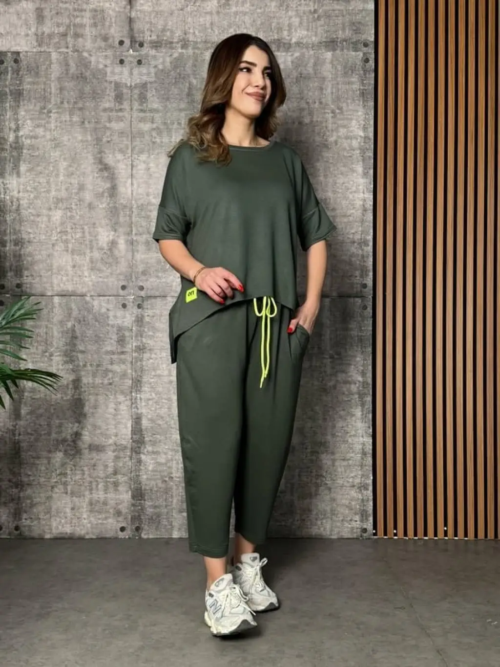 Kadın Kısa Kollu Bisiklet Yaka Viskon Iki Iplik Bluz Ve Pantolon Ikili Takım