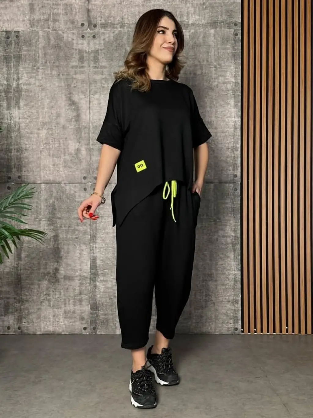 Kadın Tek Omuzdan Açık Viskon Iki Iplik Bluz Bağcıklı Pantolon Ikili Takım