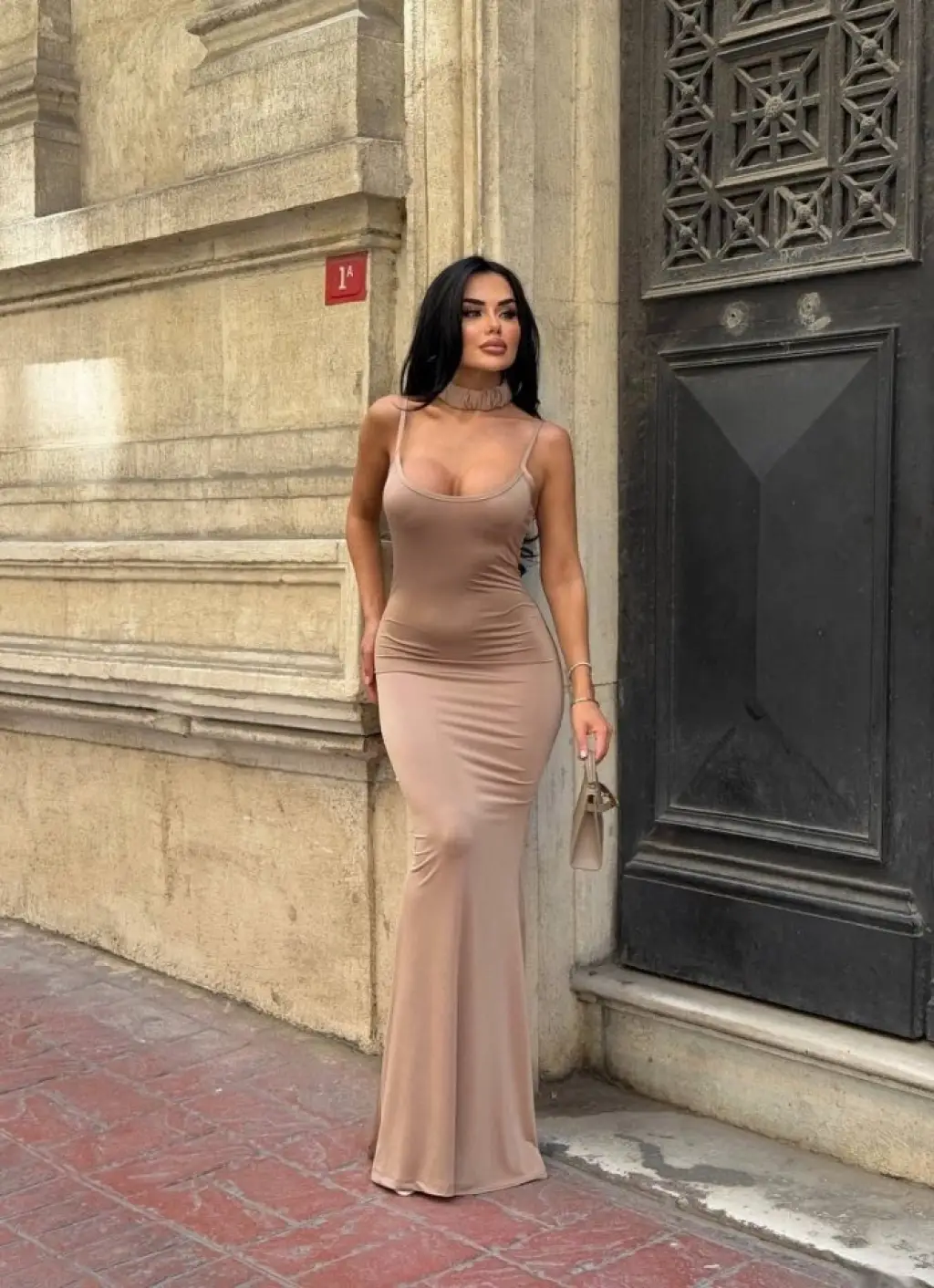 Kadın Ip Askılı Yuvarlak Yakalı Cepli Uzun Viskon Elbise