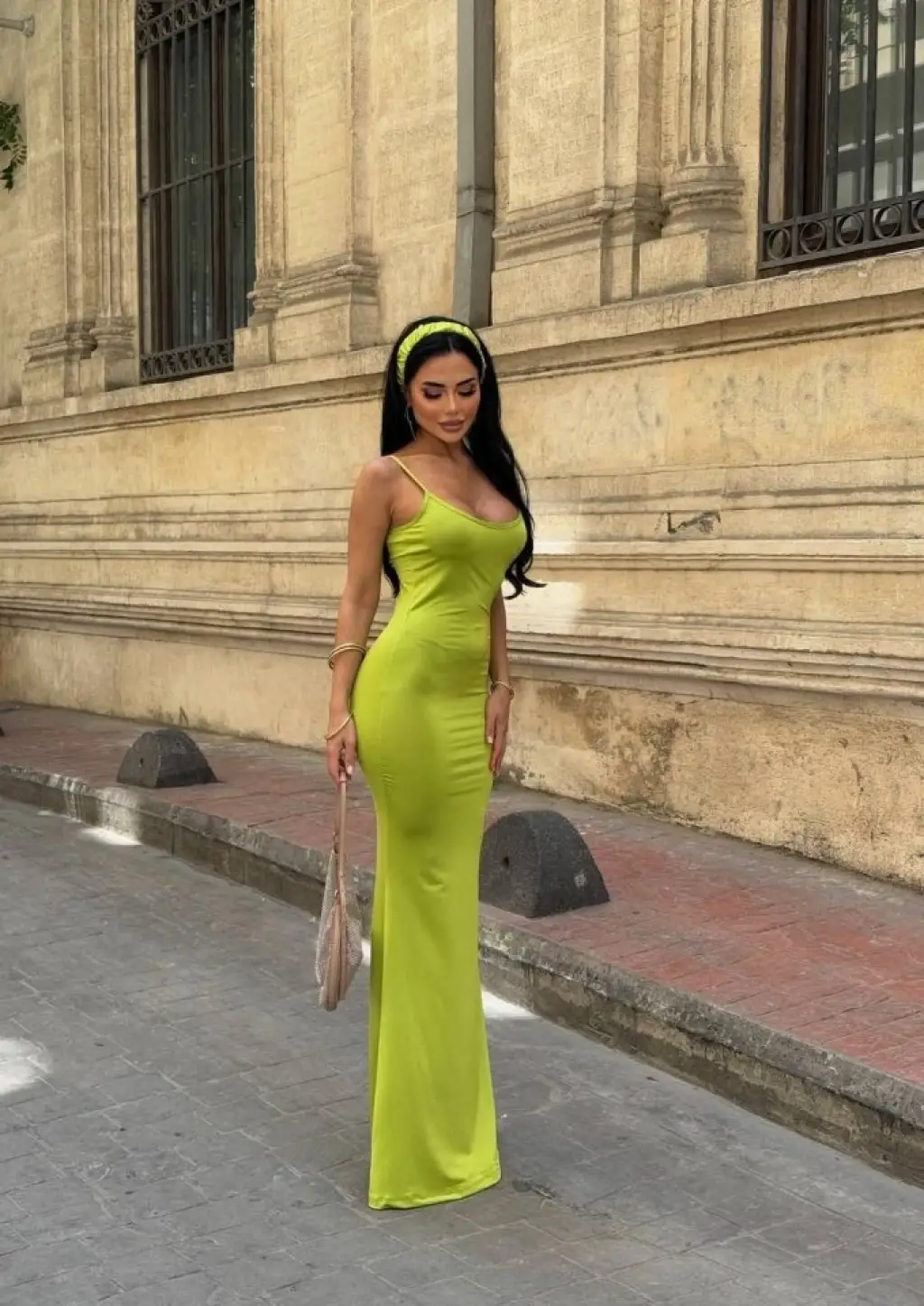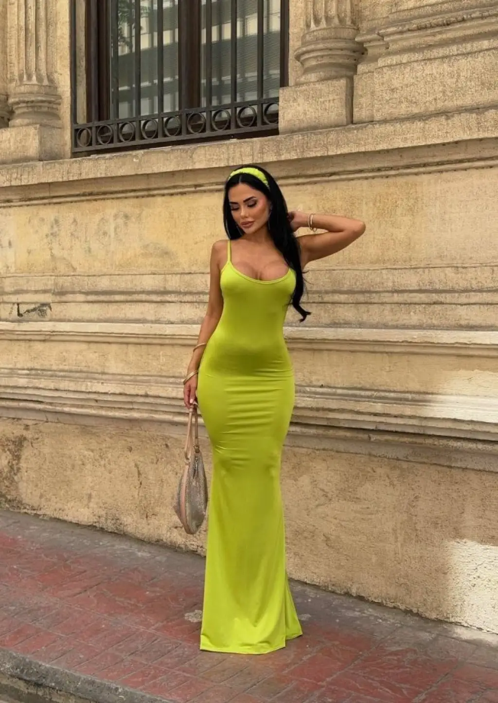 Kadın Ip Askılı Yuvarlak Yakalı Cepli Uzun Viskon Elbise