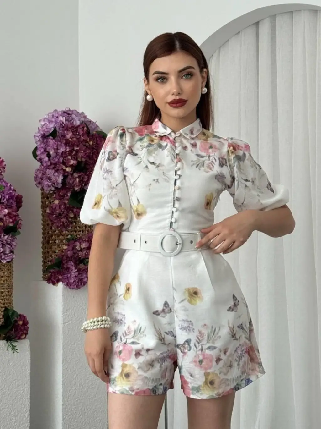 Kadın Uzun Kollu Baskılı Hakim Yaka Helen Kumaş Bluz