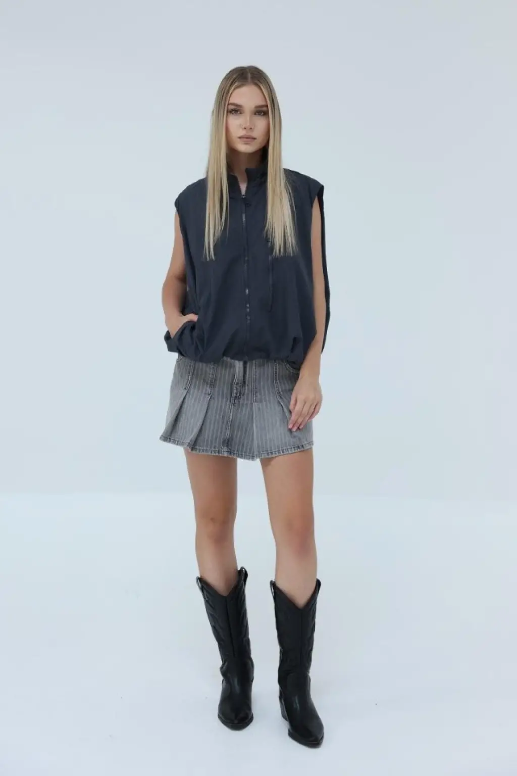 Siyah Yanları Bağcıklı Yelek