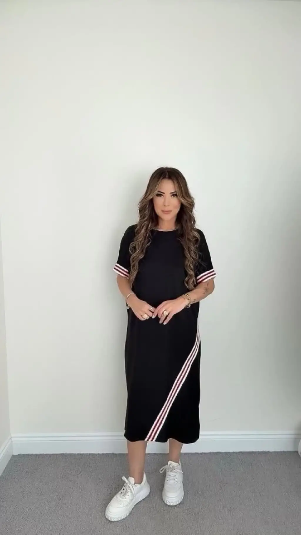 Kadın Kol Ve Etek şerit Detaylı Midi Boy Elbise