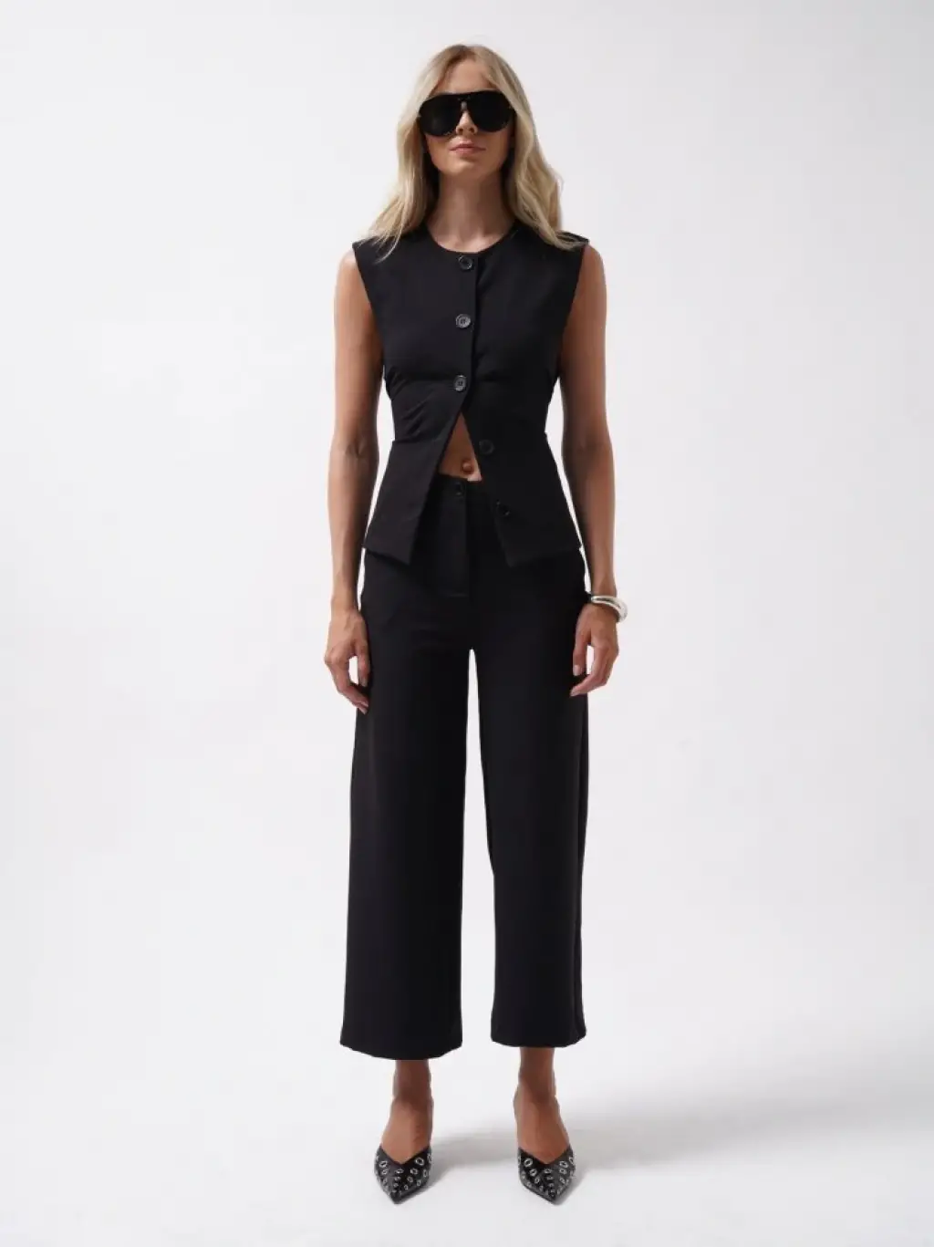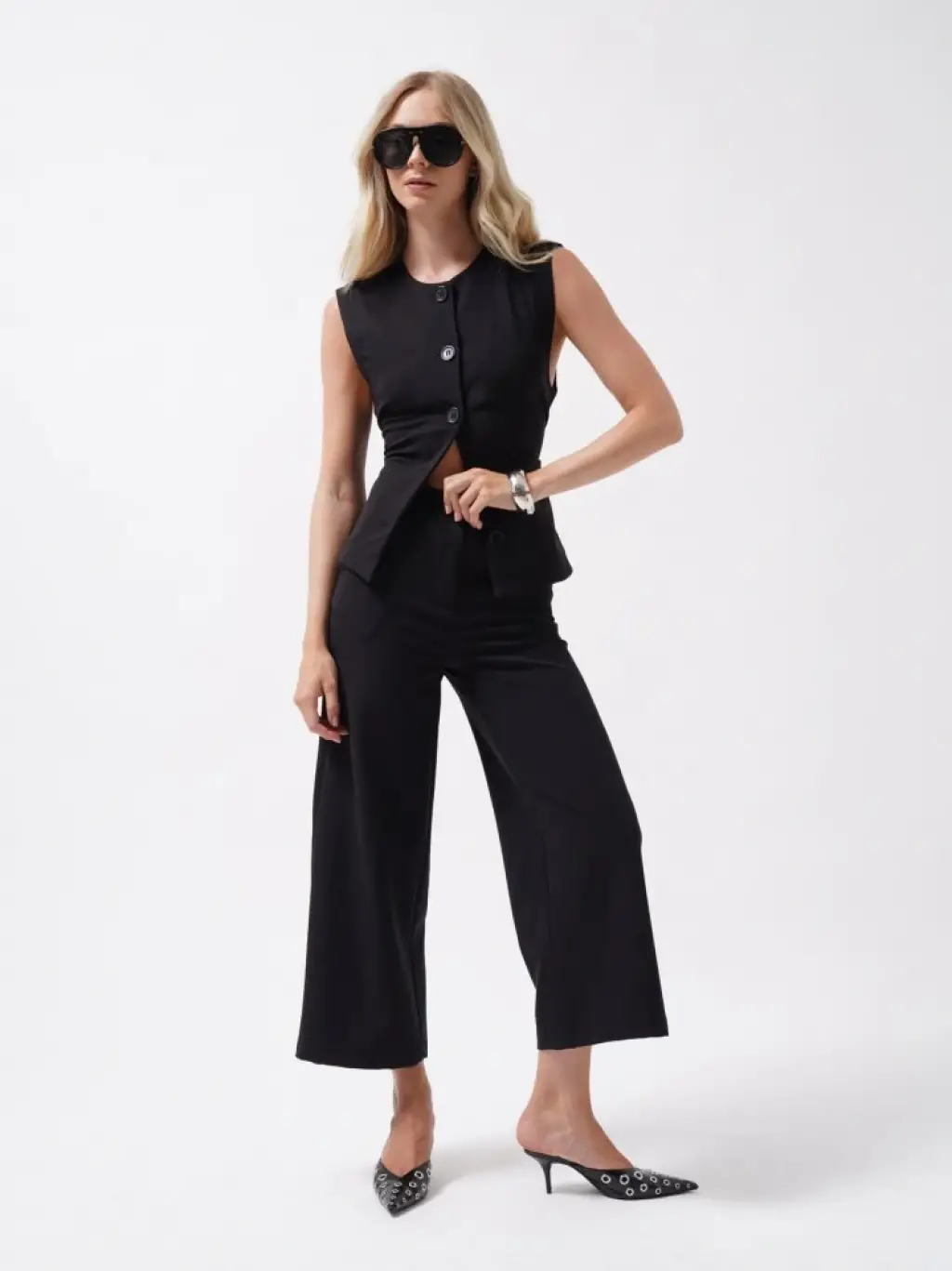 Kadın Uzun Kollu Balıkçı Yaka önden Düğmeli Bluz Ve Pantolon Yumoş Ikili Takım