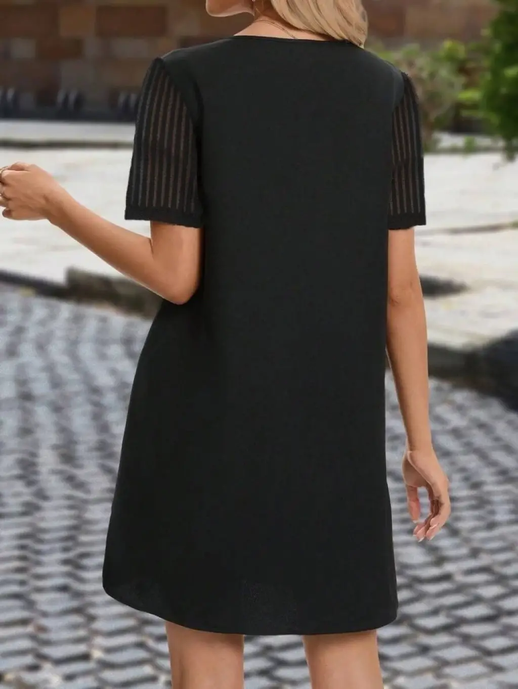 Kadın Kısa Kollu V Yakalı Kısa Janjan Krep Elbise