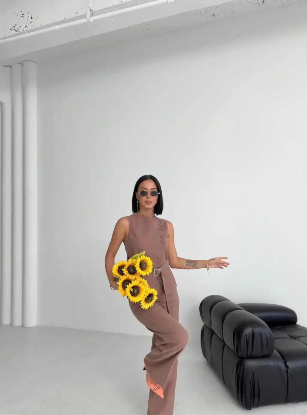 Ti̇na Asi̇metri̇k Keten Yelek Pantolon Takim