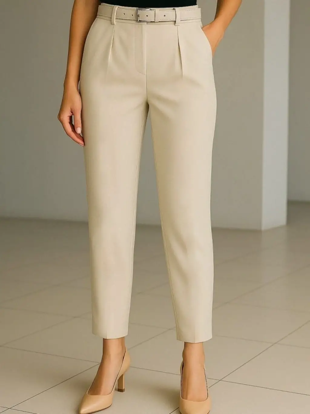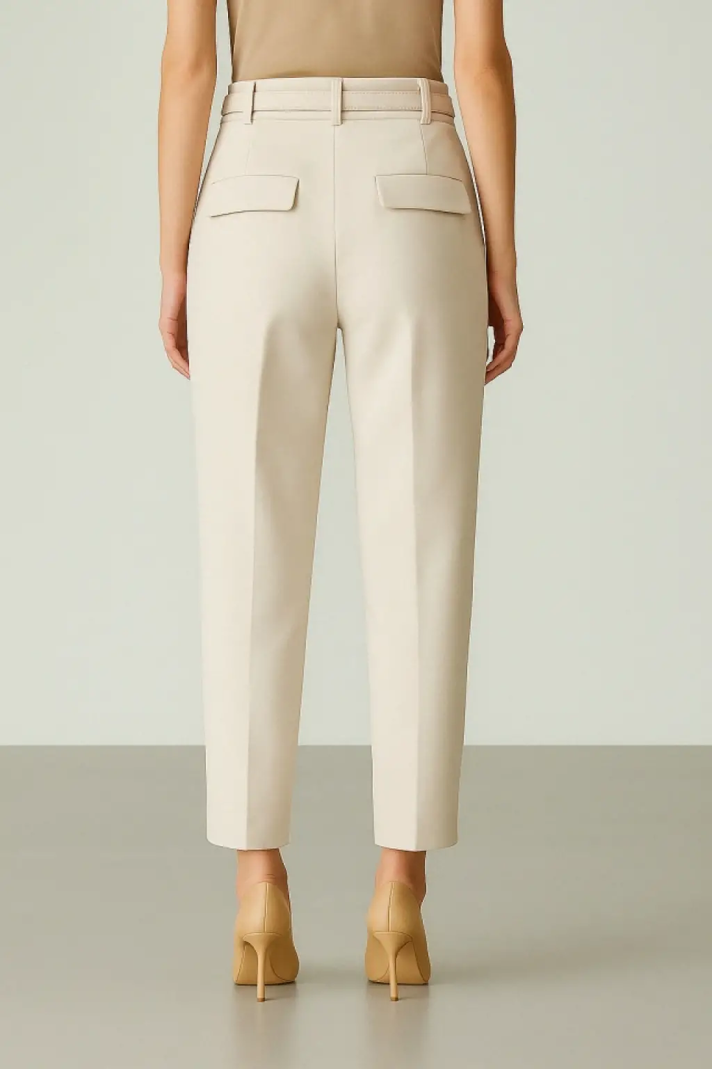 Beli Kemerli Çift Cepli Pantolon-Bej