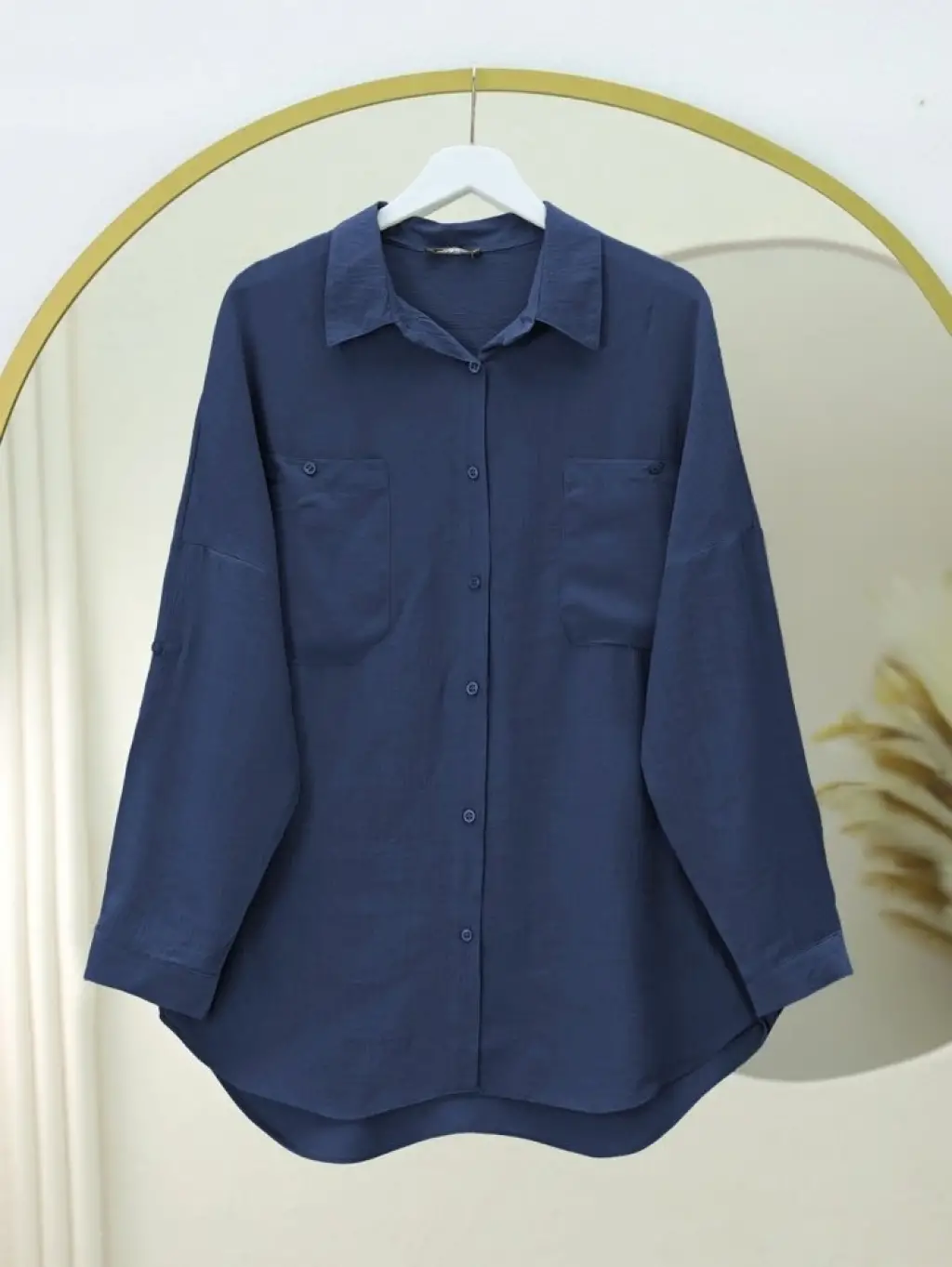 Çift Cepli Oval Kesim Kolu Katlamalı Gömlek Tunik
