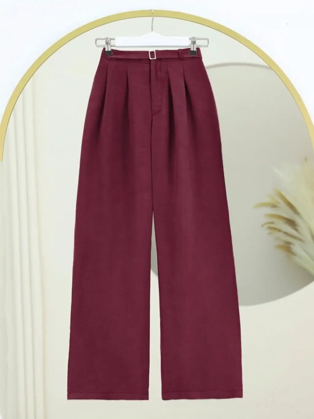 Beli Lastikli Kemer Detaylı Tensel Cupra Pantolon -Bordo