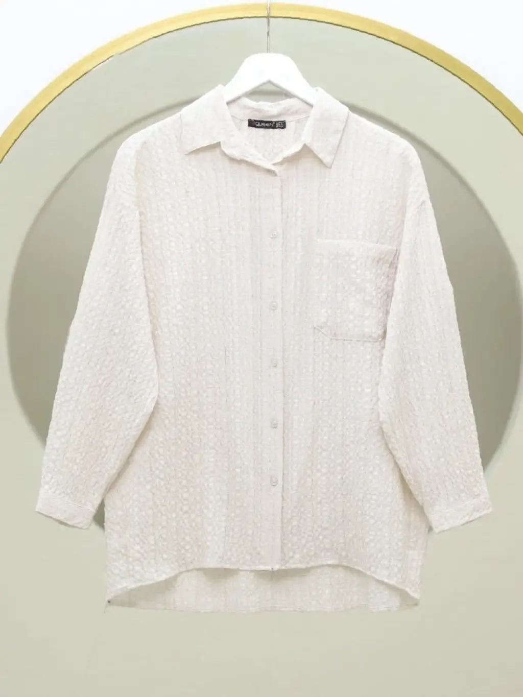 Tek Cepli Düğmeli Krinkıl Tunik -Krem