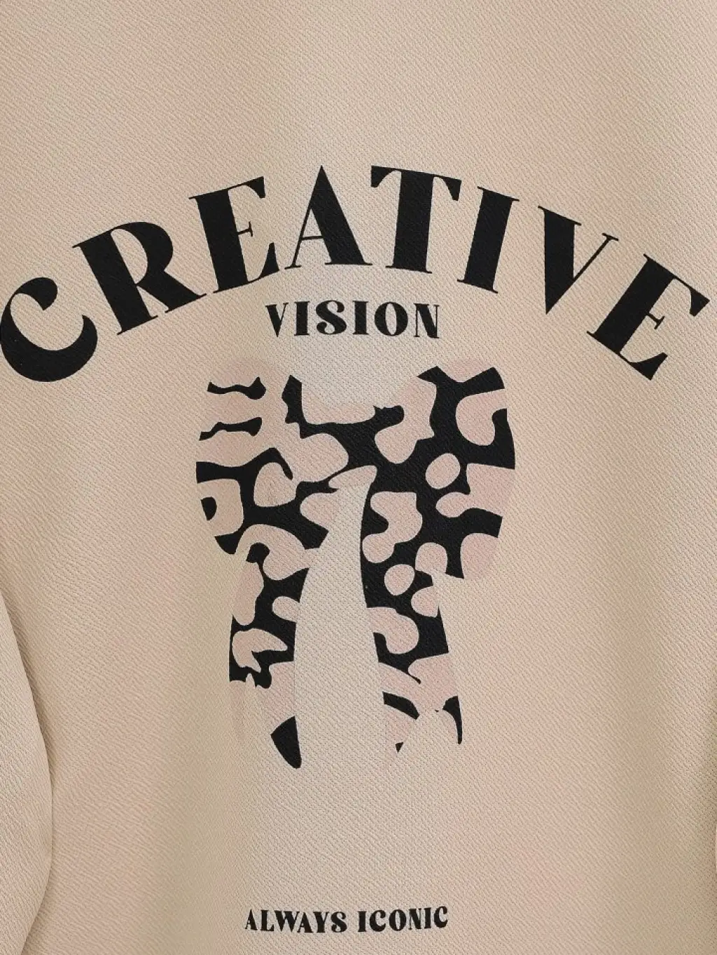 Yuvarlak Yaka Fiyonk Baskılı Leopar Etekli Takım -Bej