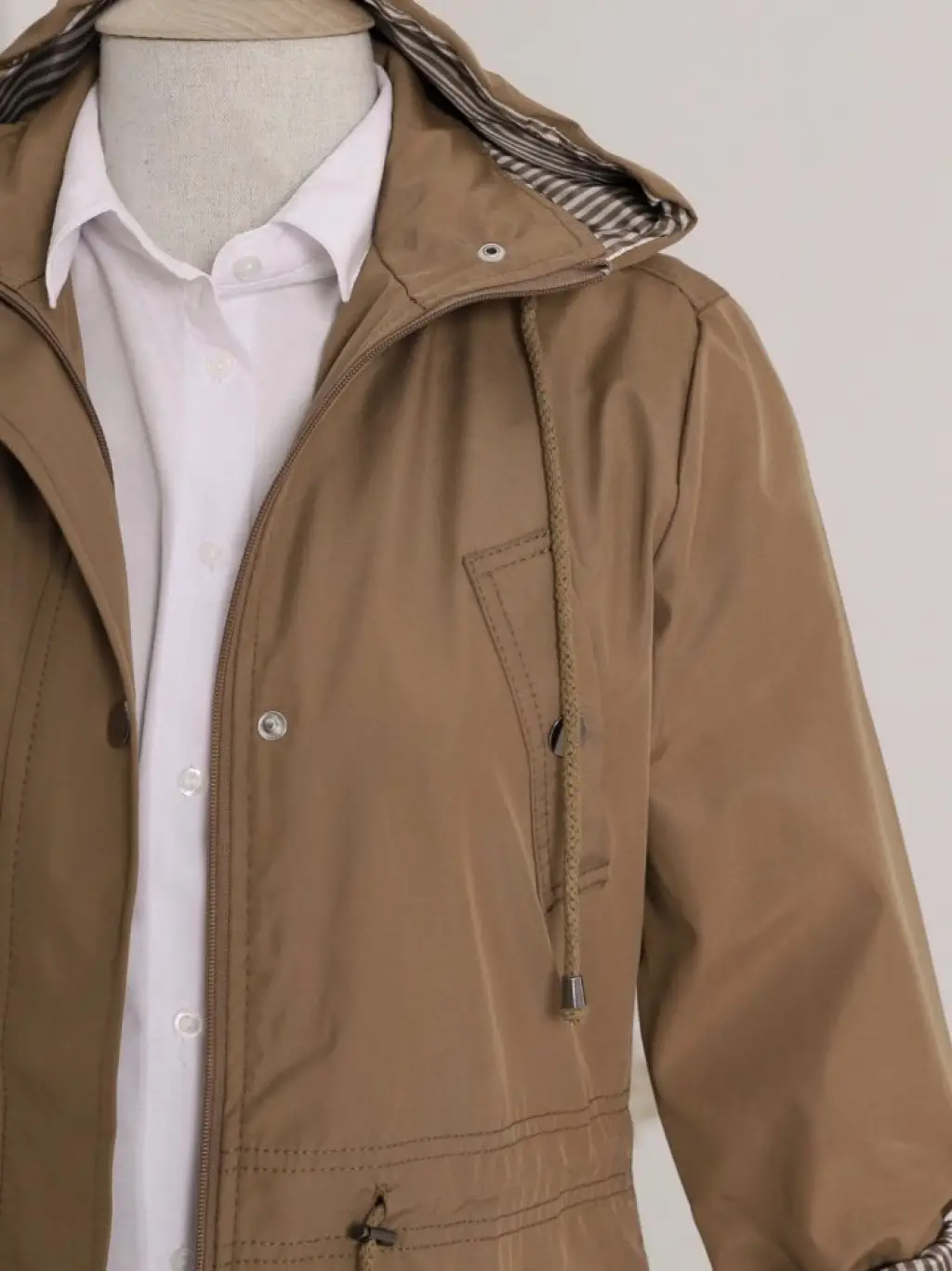 Düğmeli Kemerli Ara Boy Trençkot -Taba
