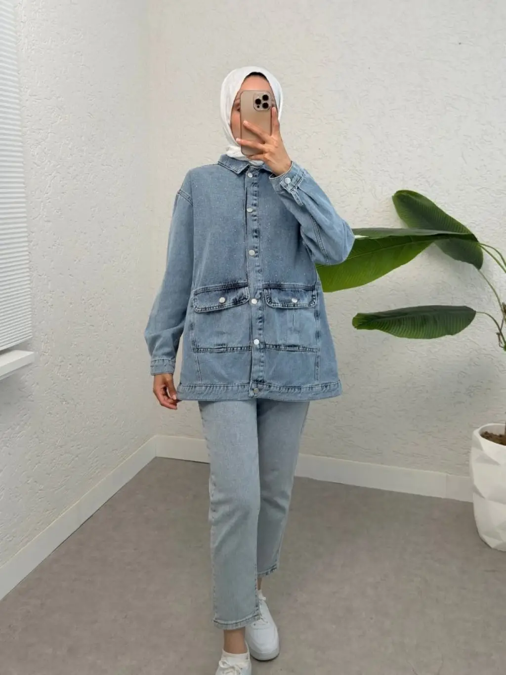 Kapaklı Cepli Puntolu Kot Ceket -Buz Mavi
