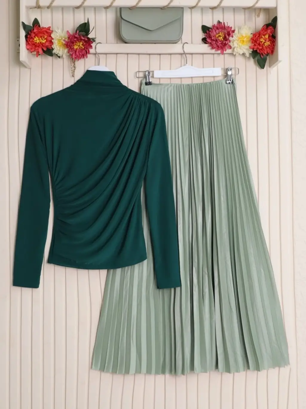 Yarım Boğaz Büzgülü Sandy Bluz -Zümrüt