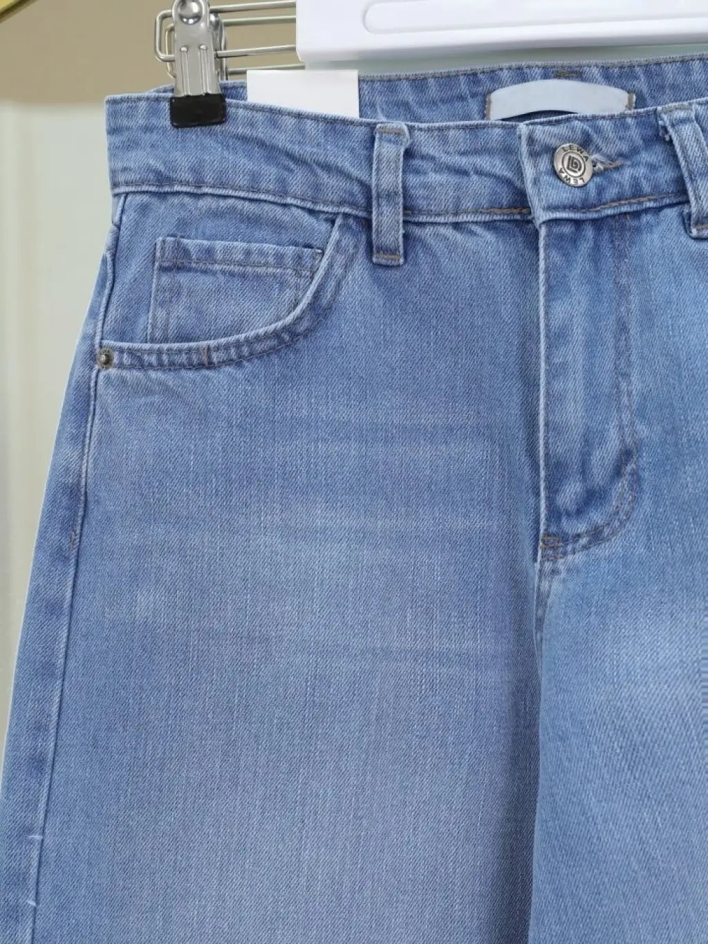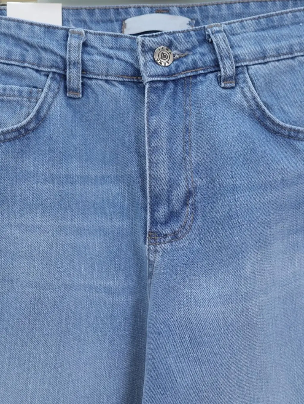 Çok Cepli Yüksek Bel Kot Pantolon -Buz Mavi
