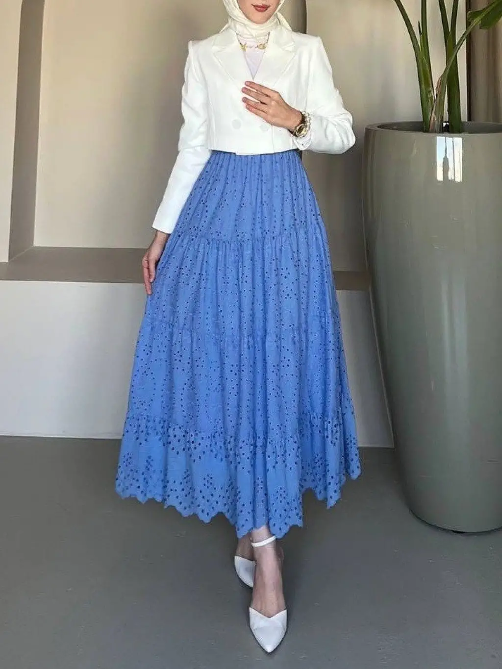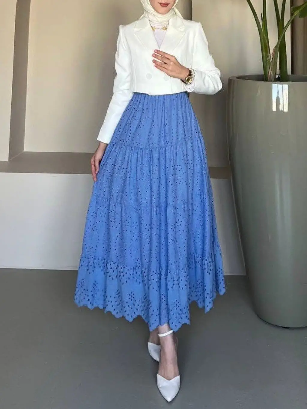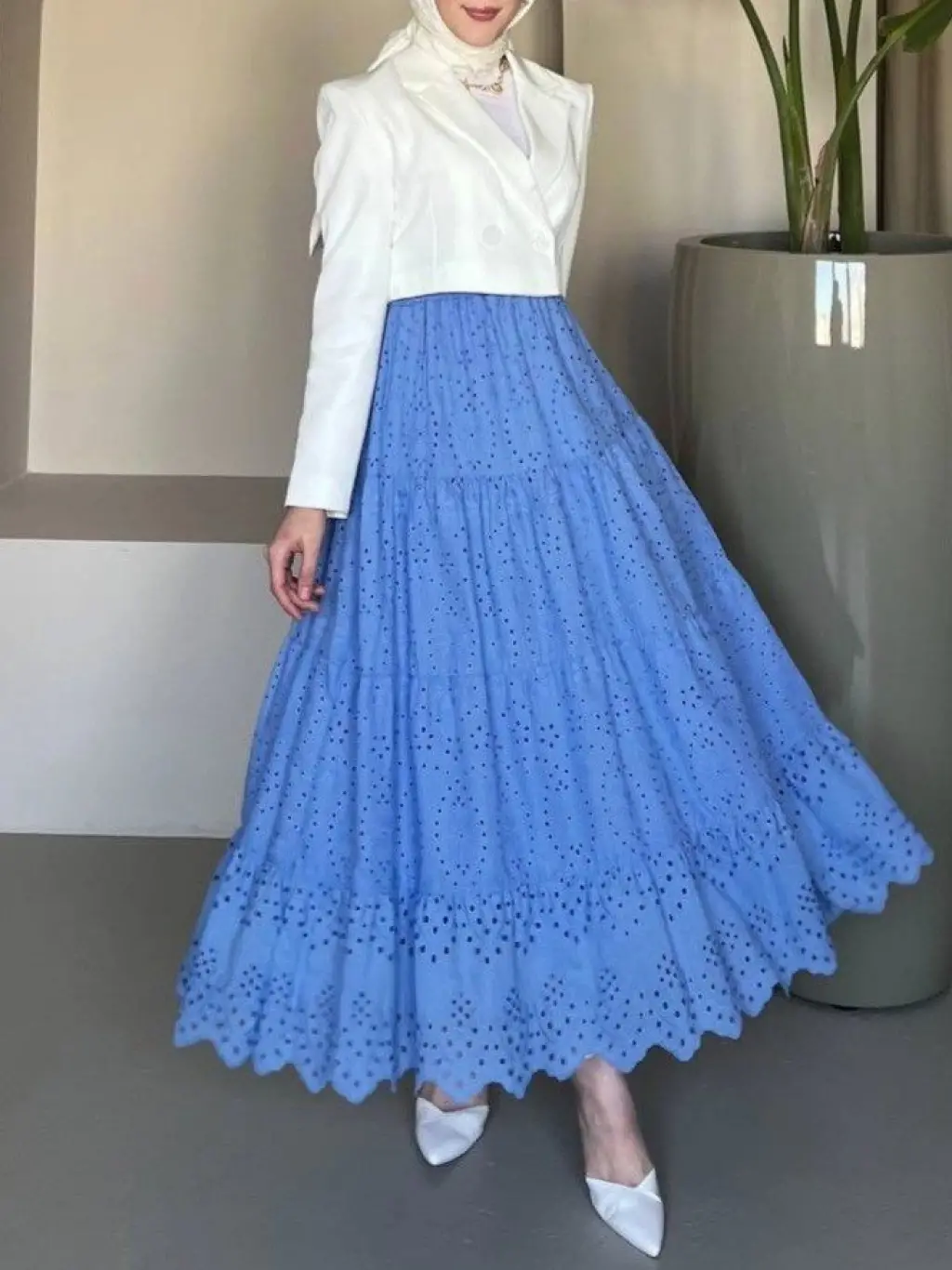 Fisto İşlemeli Katlamalı Etek -Mavi