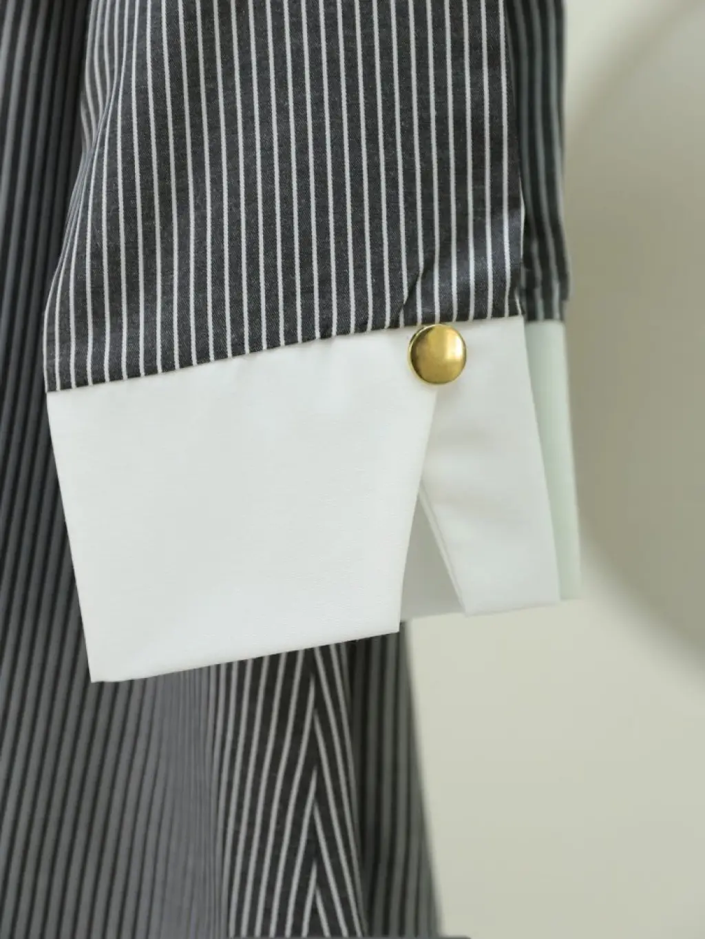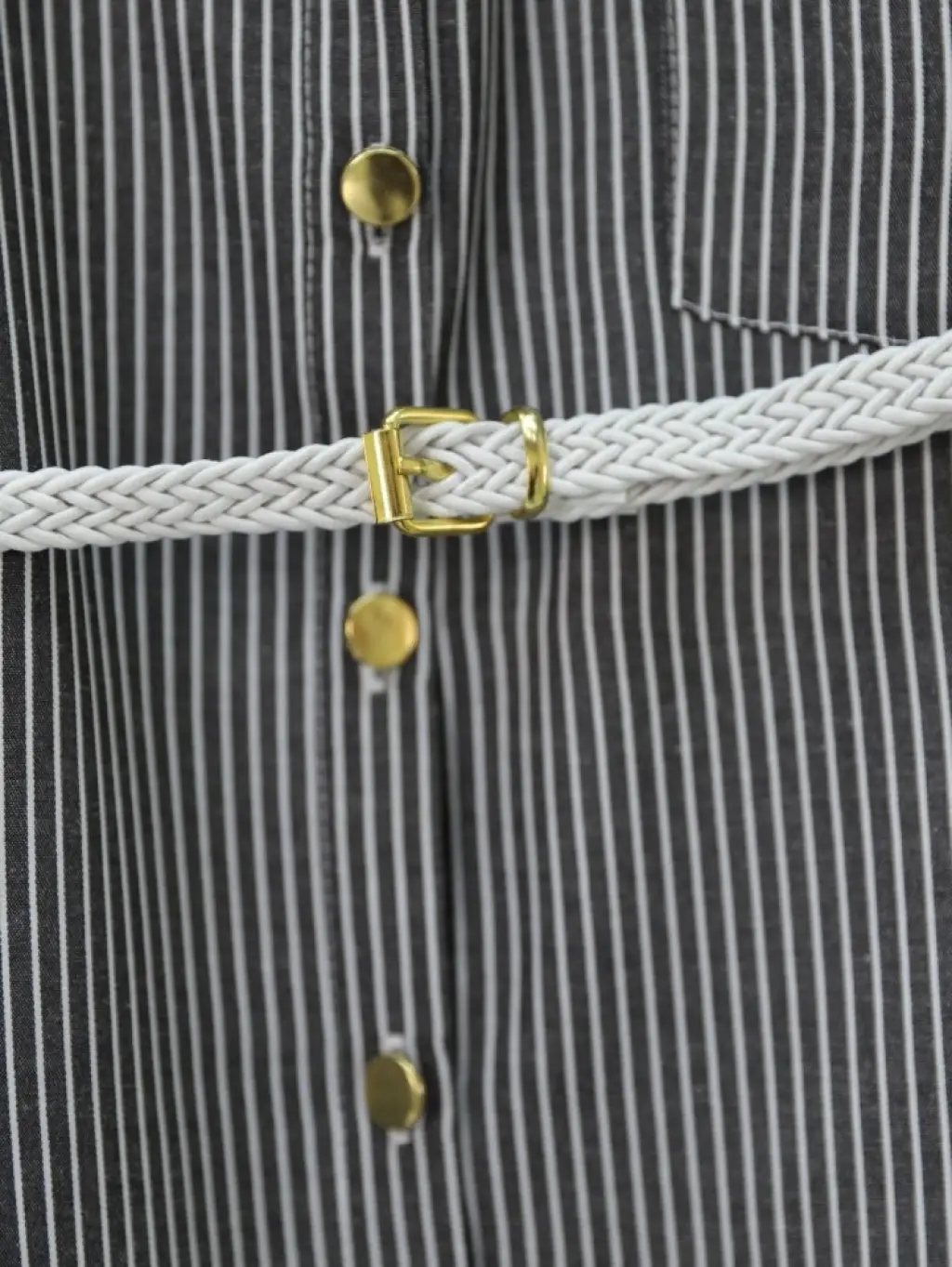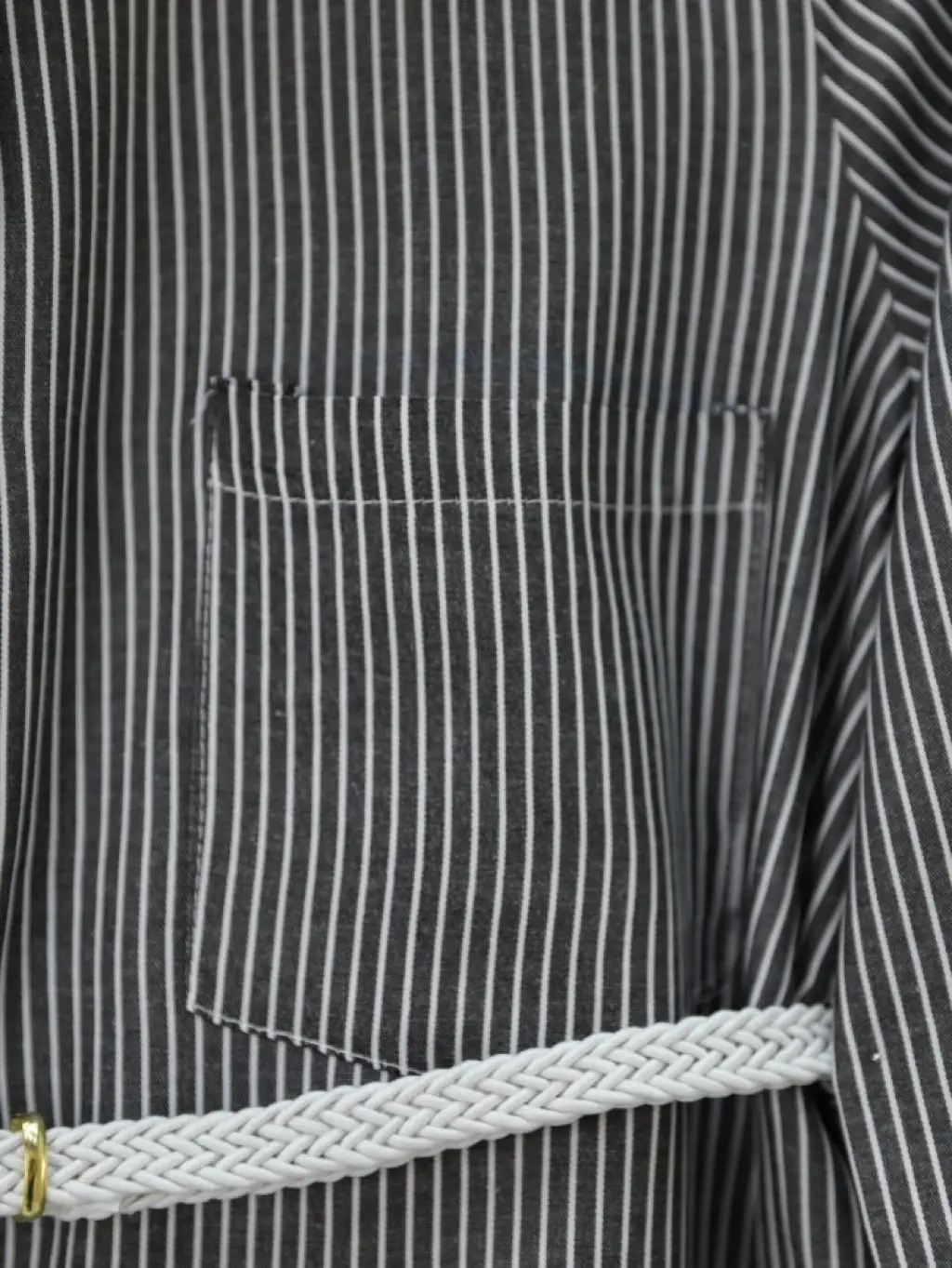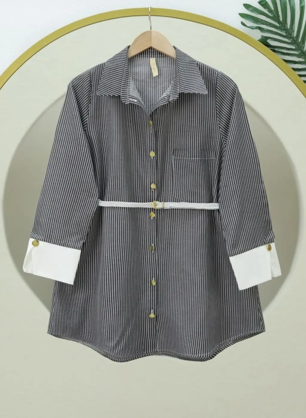 Çizgili Beli Bağcıklı Düğmeli Gömlek -Siyah