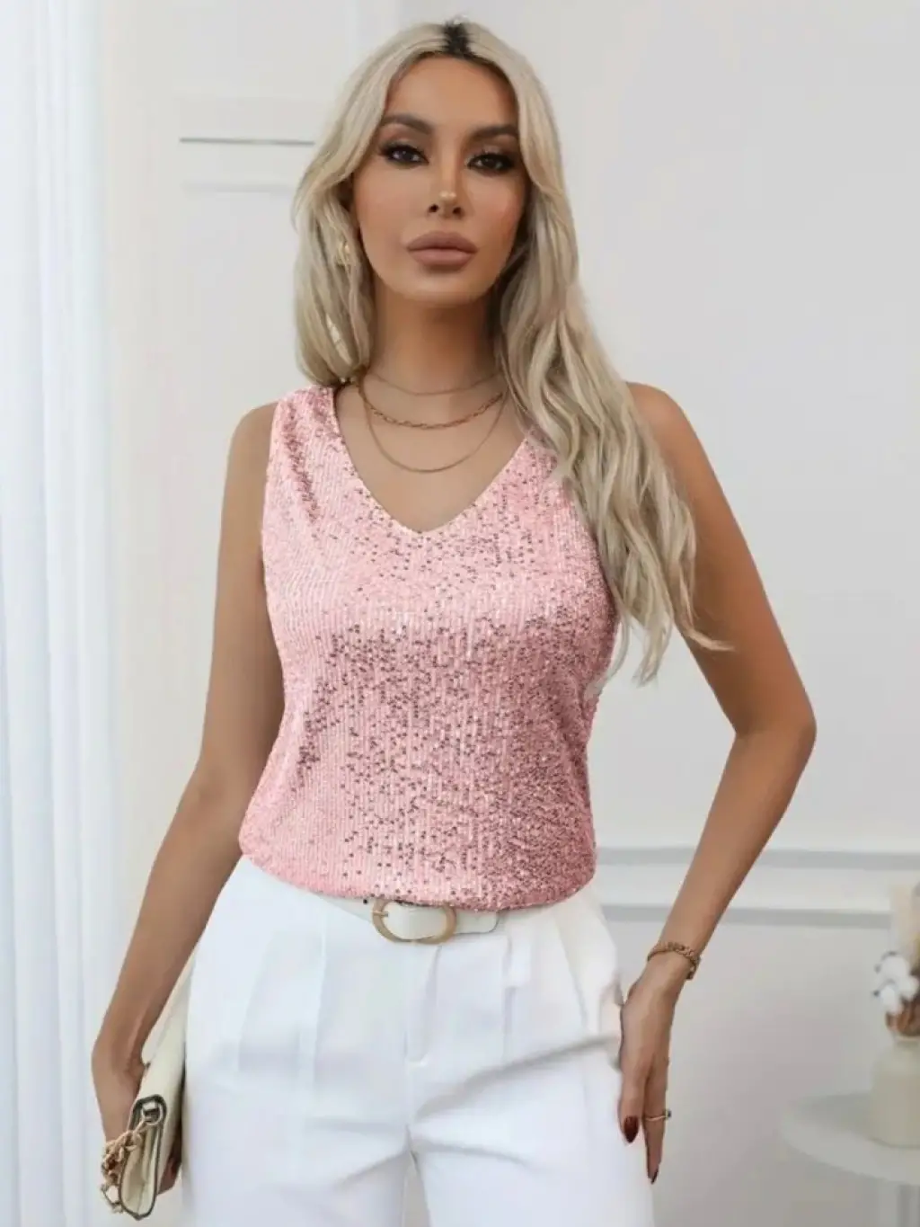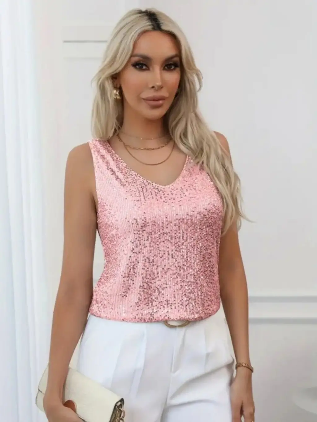 Pul Payetli Sıfır Kol Bluz -Somon