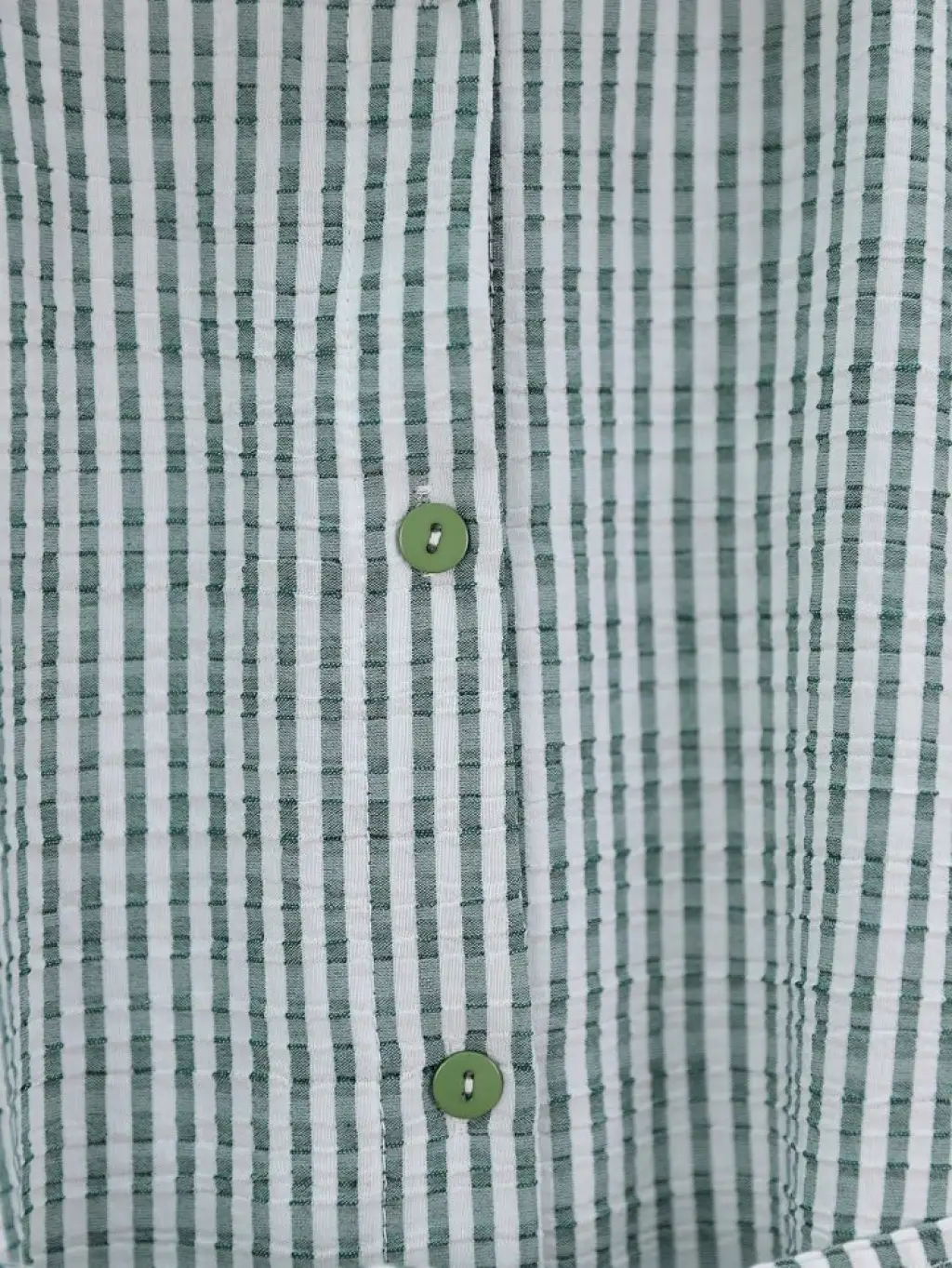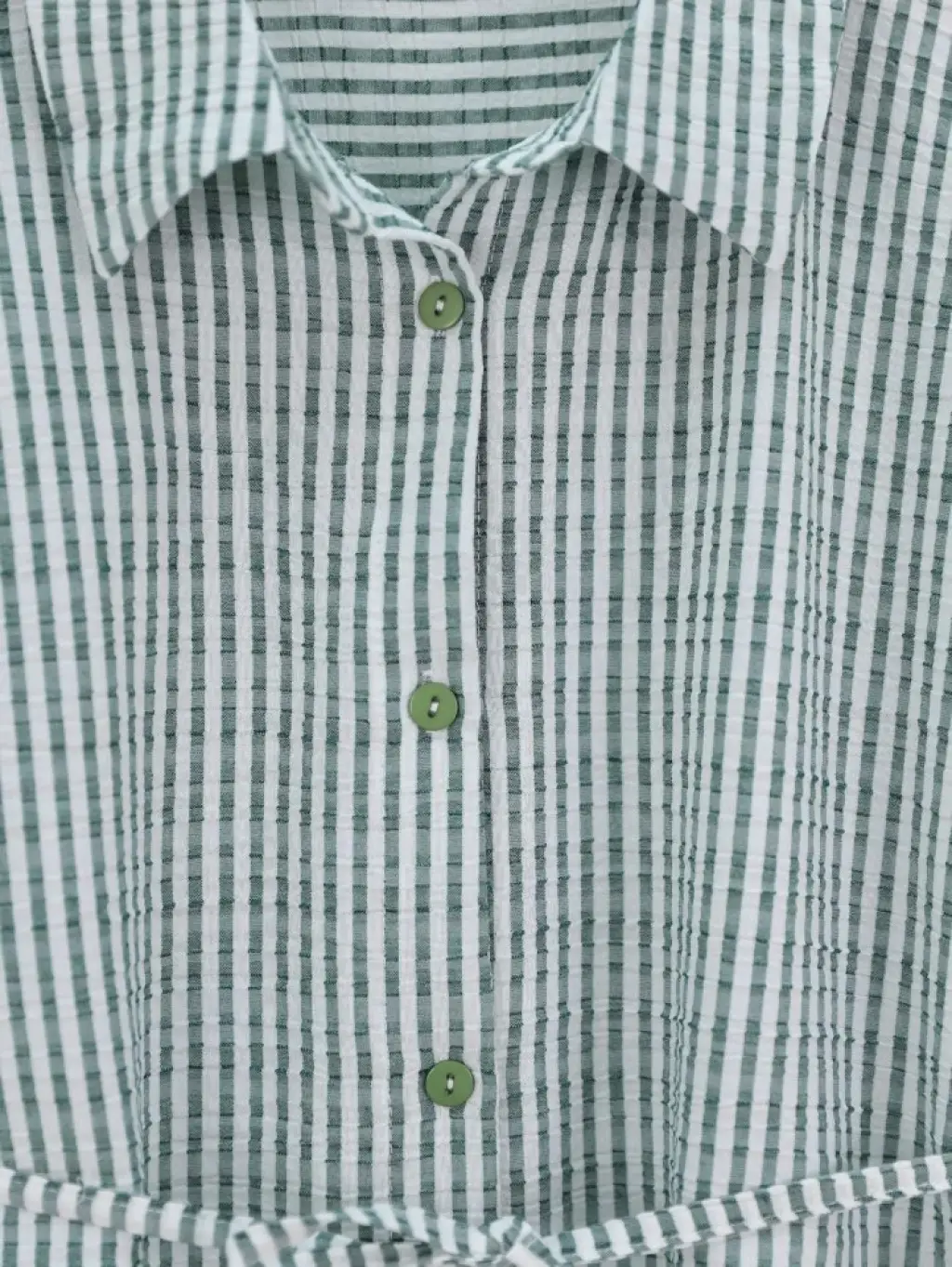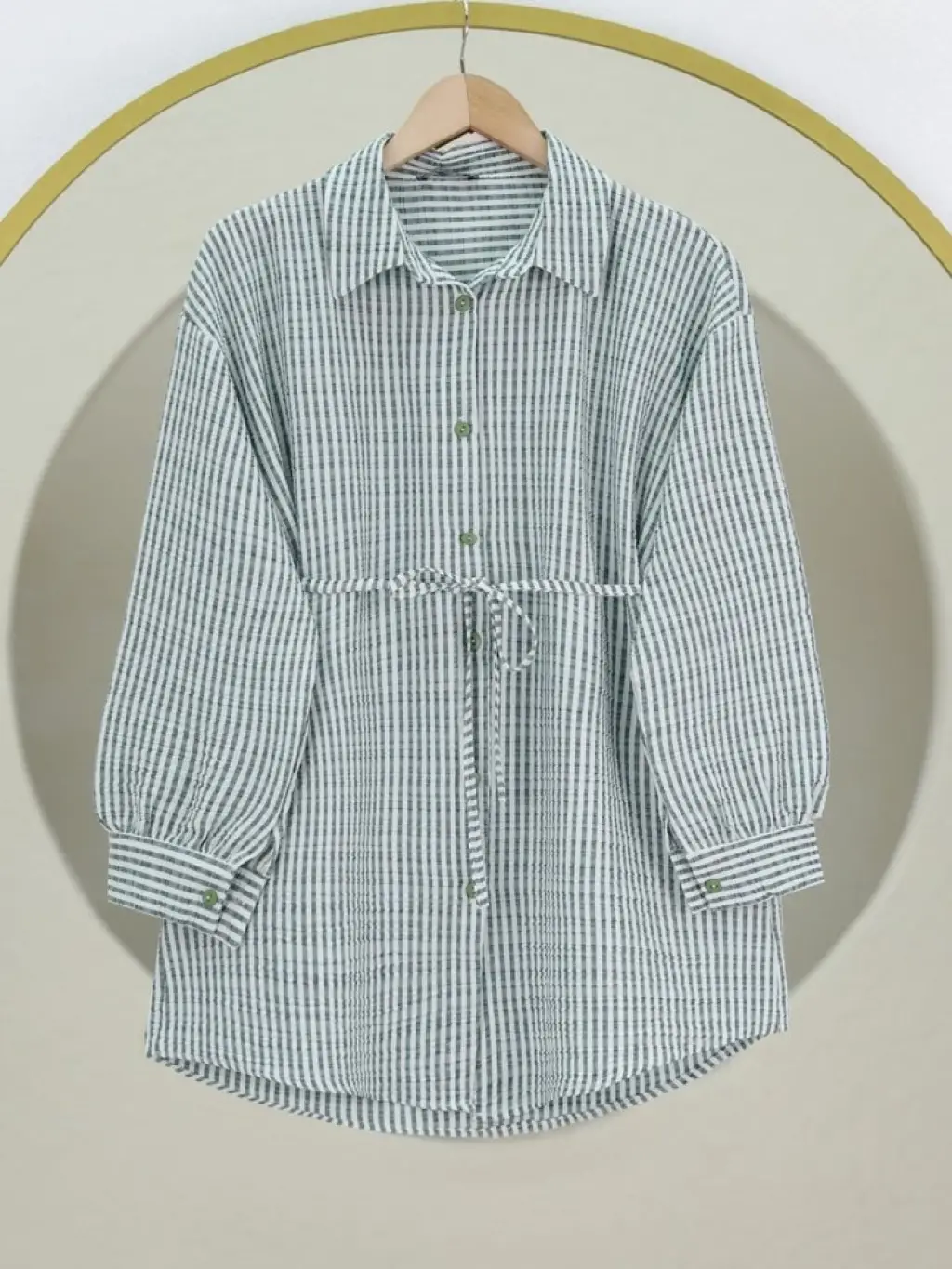Boydan Düğmeli Bağcıklı Çizgili Bürümcük Gömlek -Yeşil