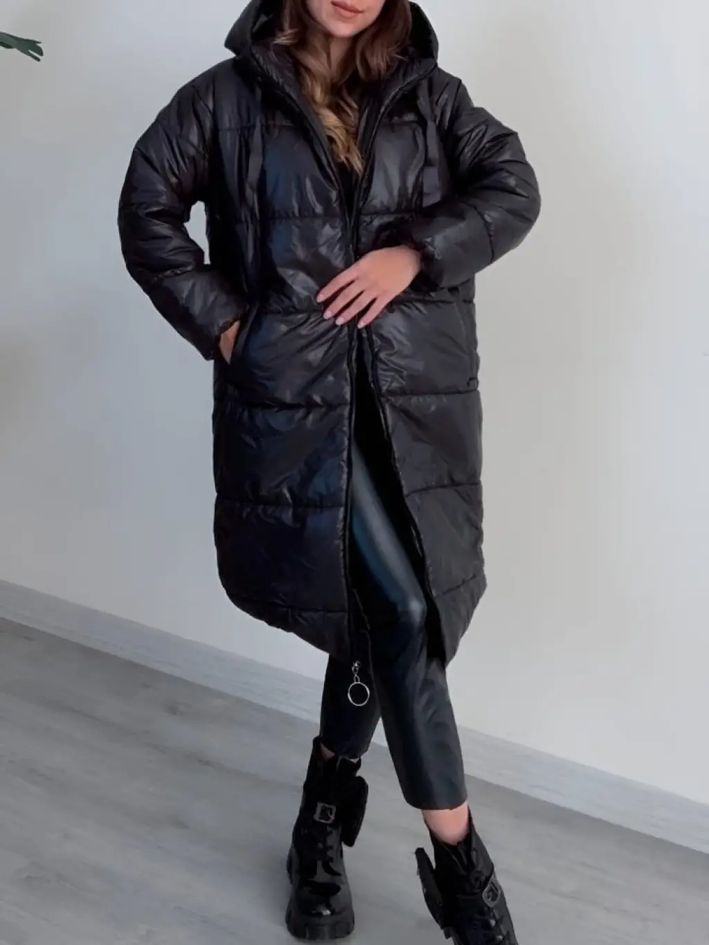 Kapşonlu Bağcık Detaylı Fermuarlı Şişme Mont -Siyah