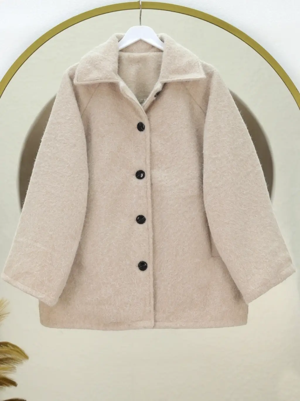 Çift Cepli Önü Düğmeli Astarlı Buklet Kaban -Bej