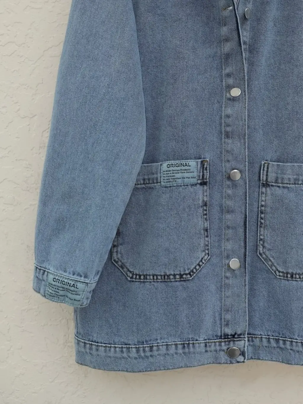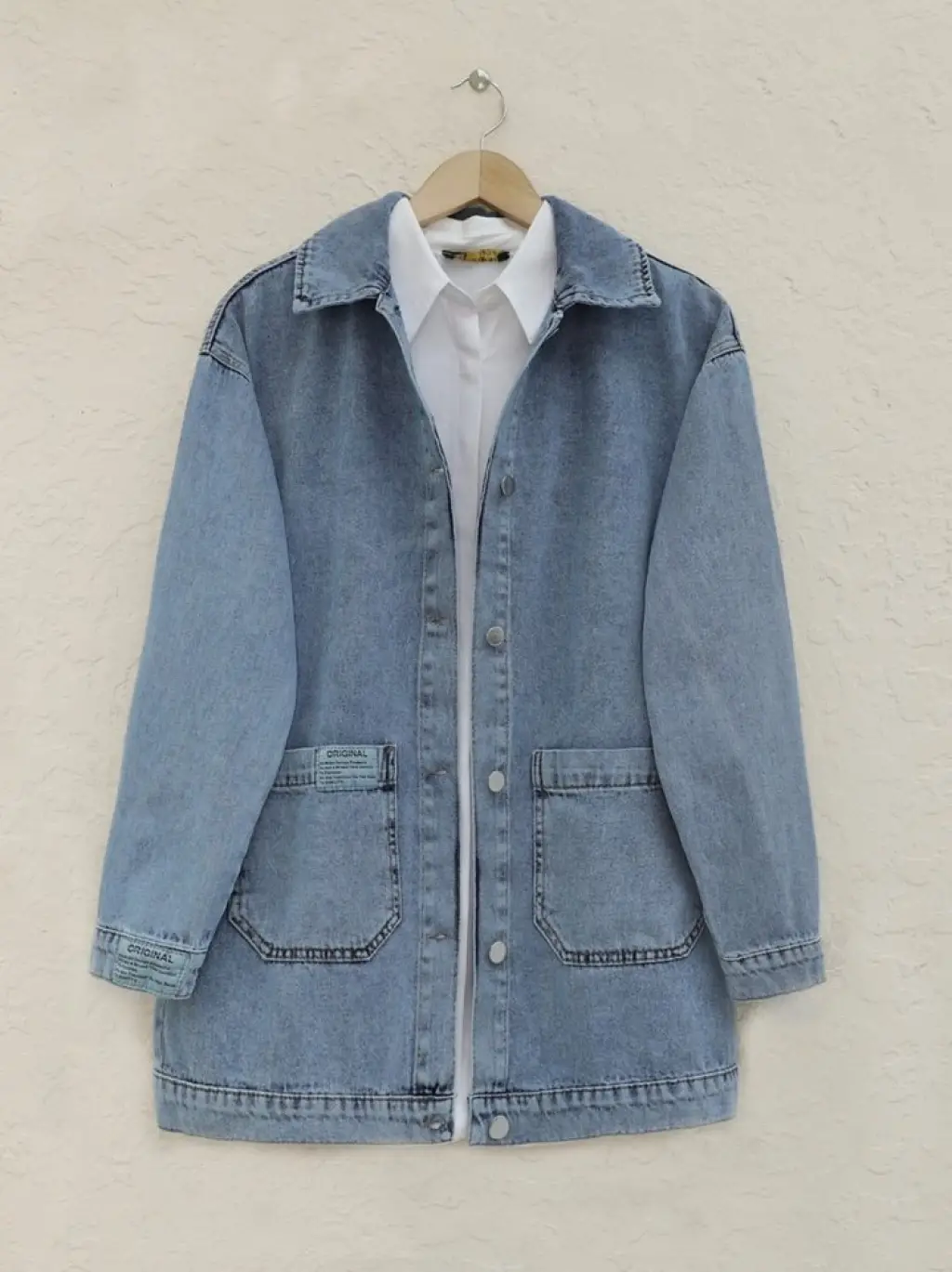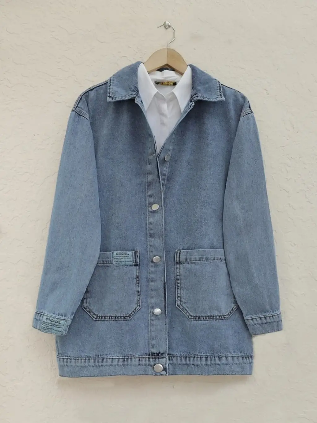 Torba Cepli Düğmeli Kot Ceket -Mavi