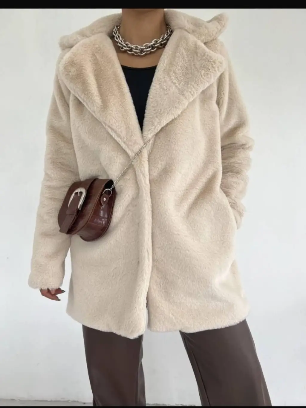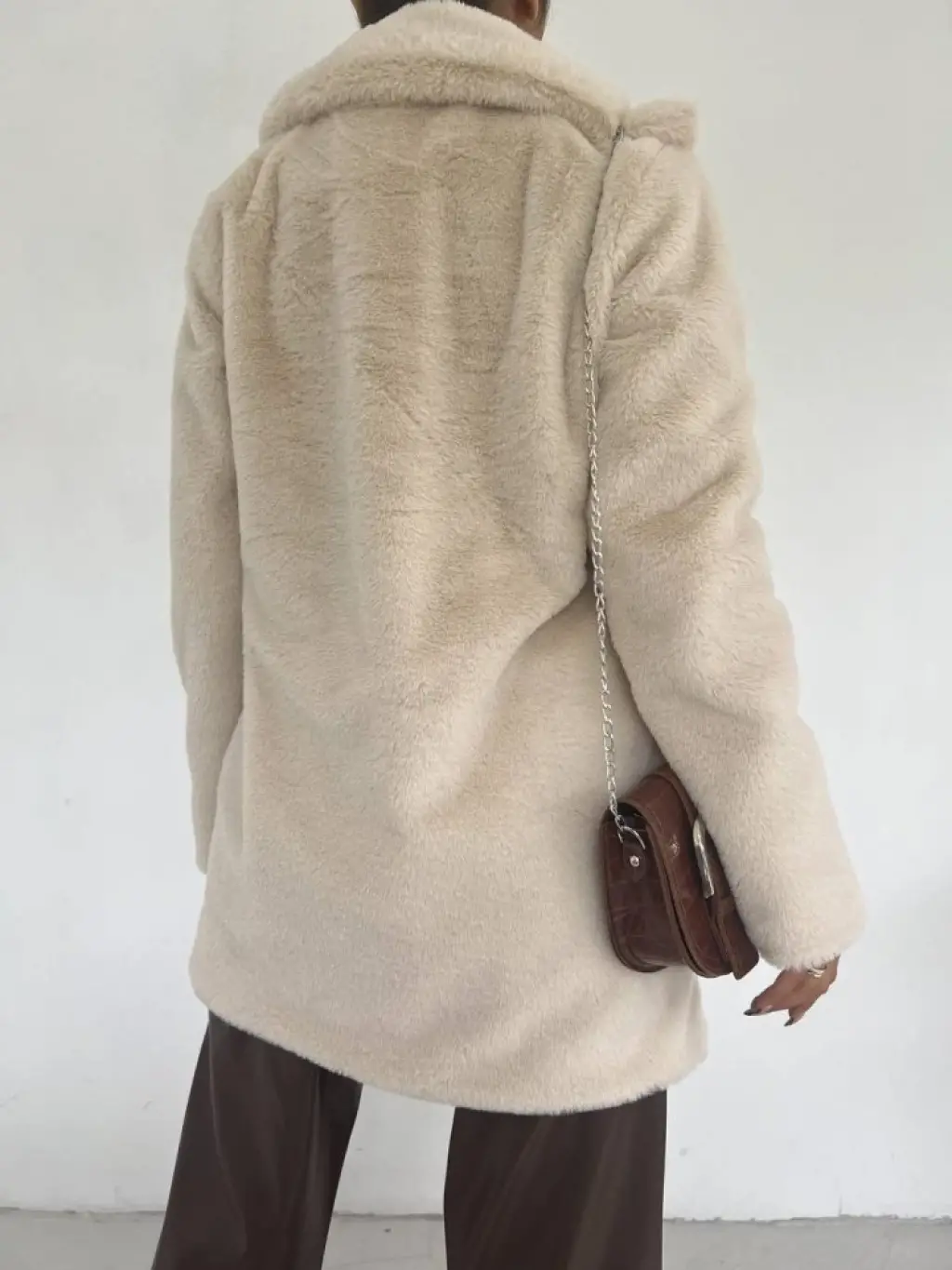 İçi Astarlı Cepli Kürklü Ceket -Taş