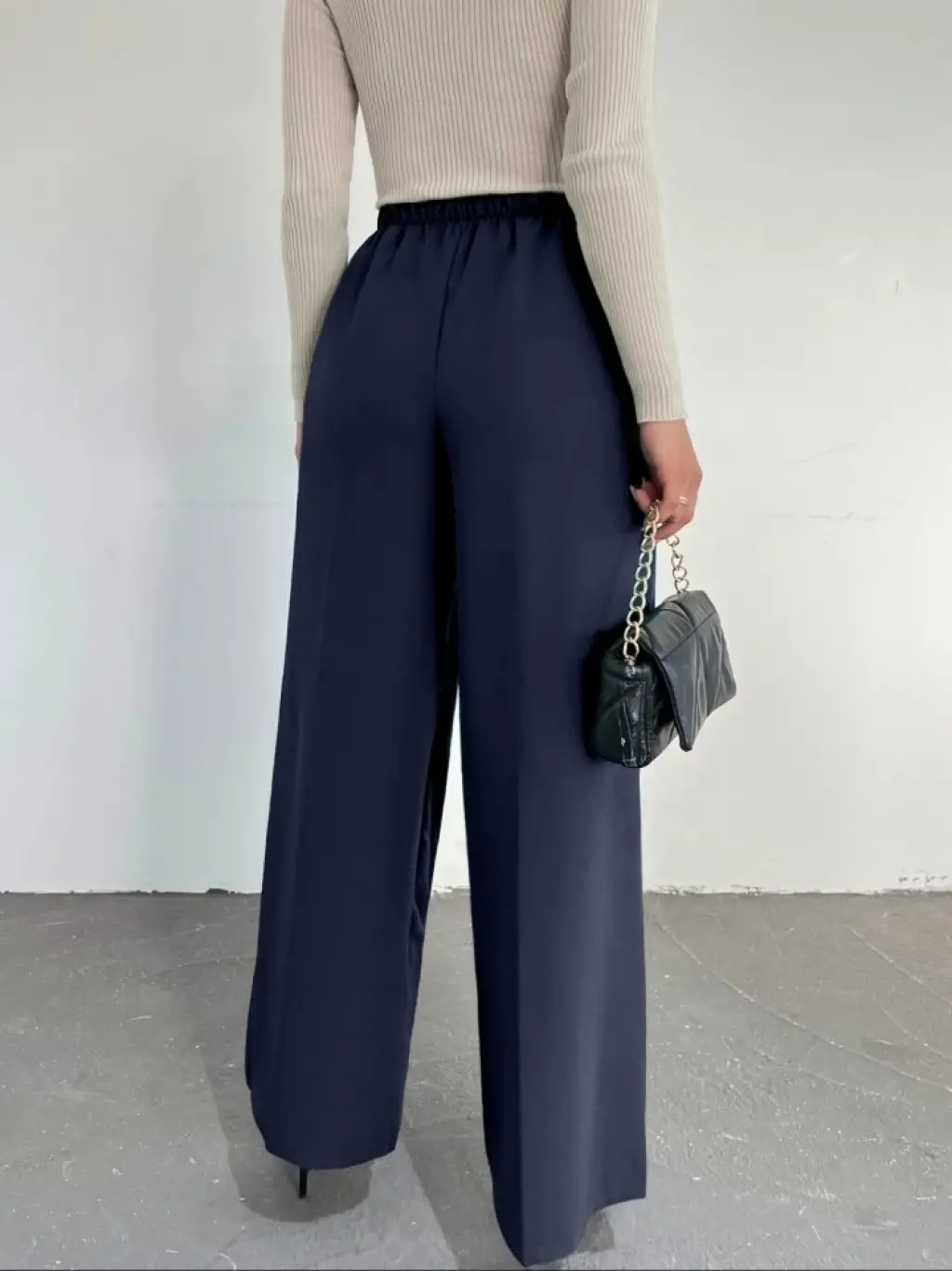 Beli Yarım Lastikli Palazzo Pantolon - Lacivert