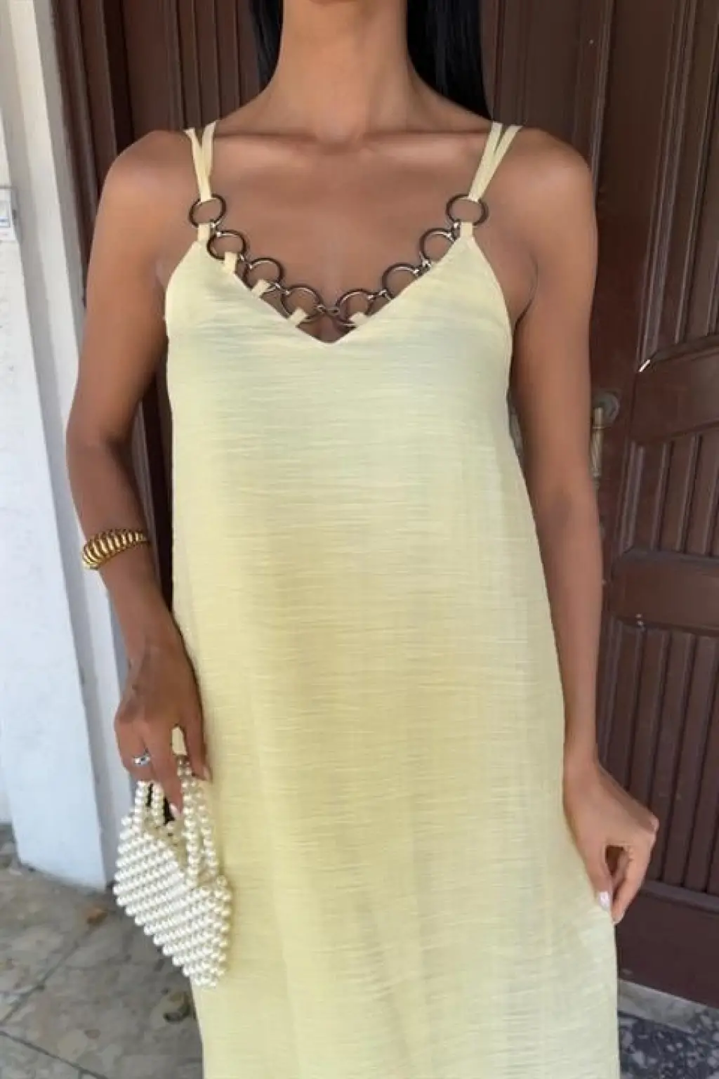 Kadın Ip Askılı V Yakalı Kısa Viskon Elbise