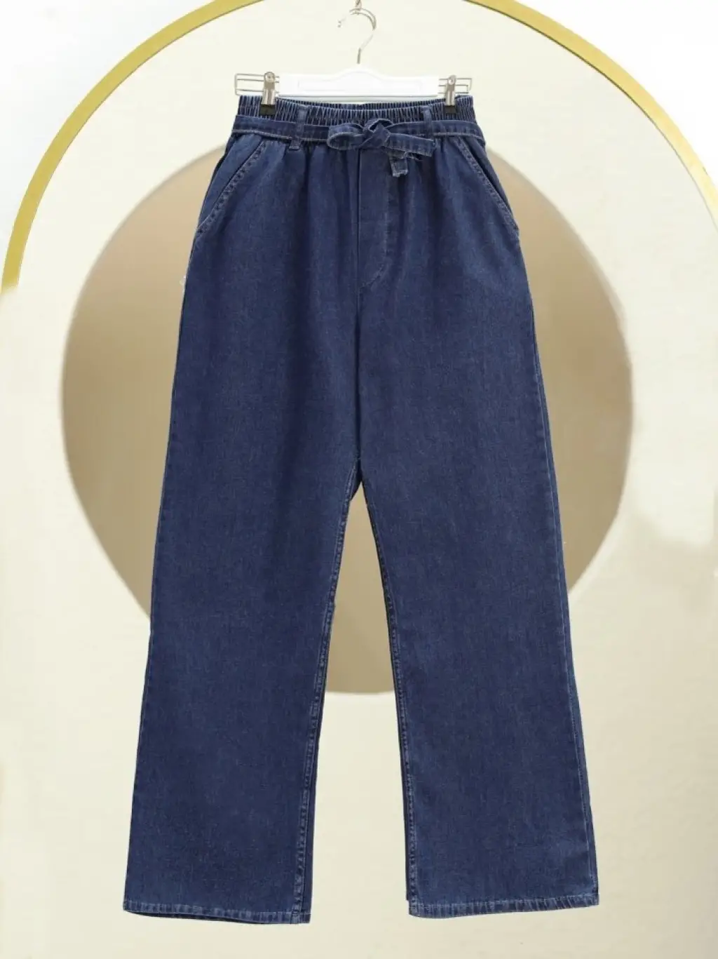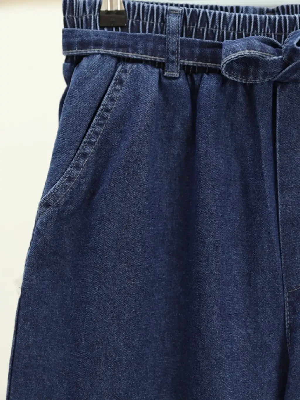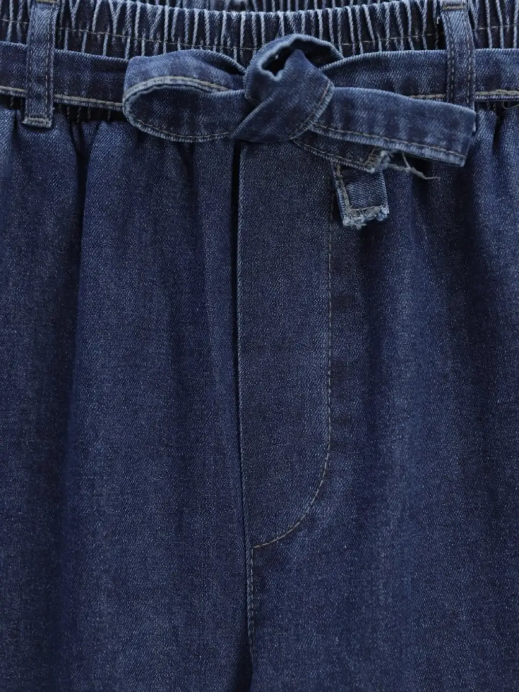Bol Paça Beli Lastikli Kuşaklı Kot Pantolon -İndigo