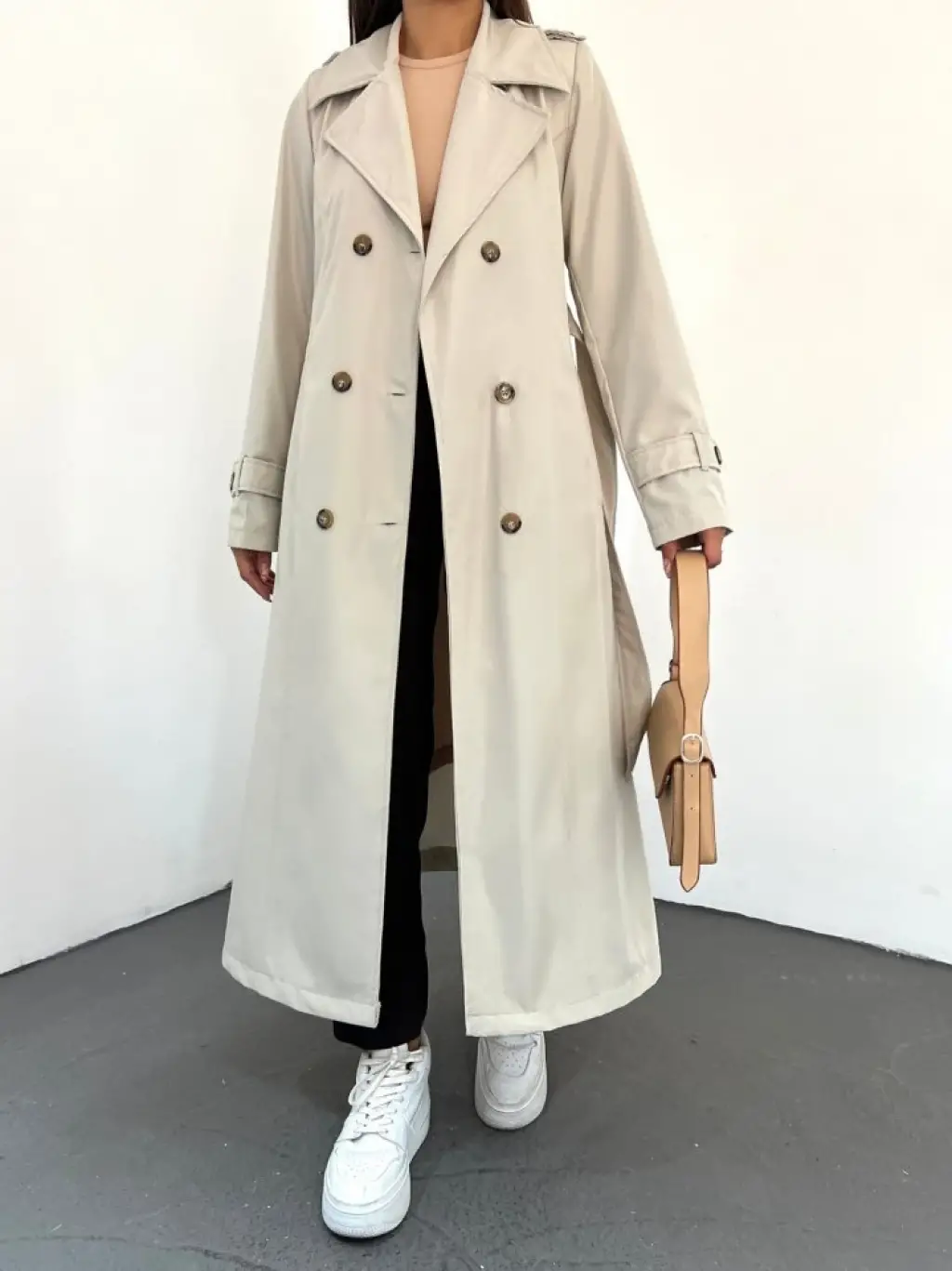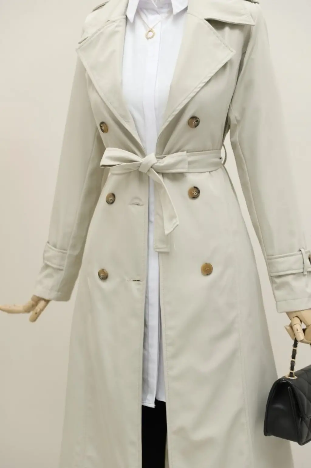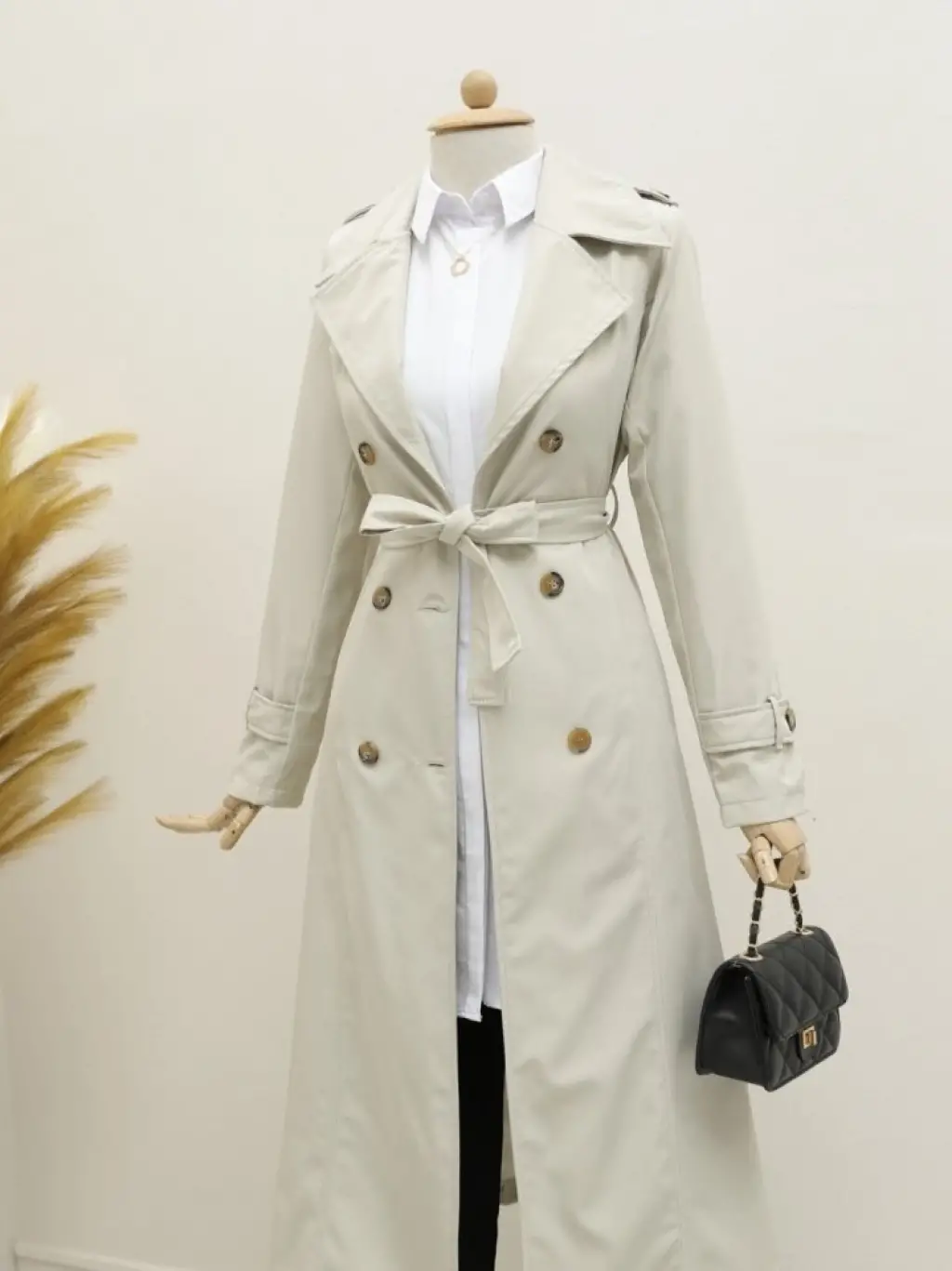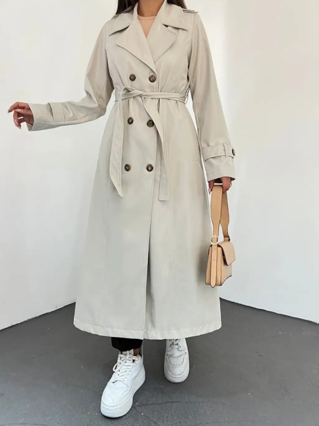 Kemerli Yan Cepli Deri Trenckot -Taba