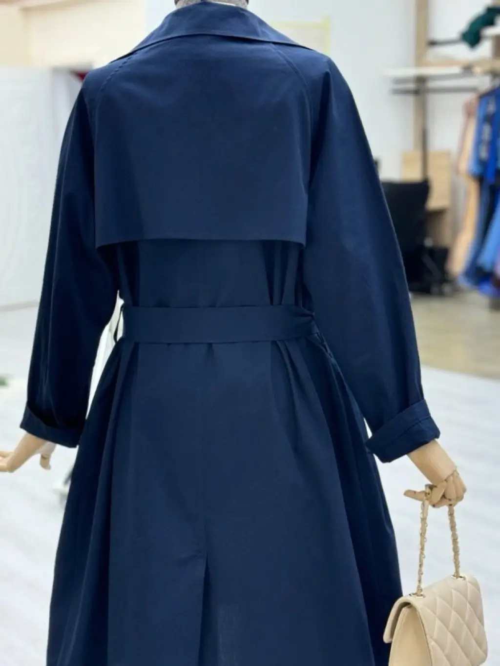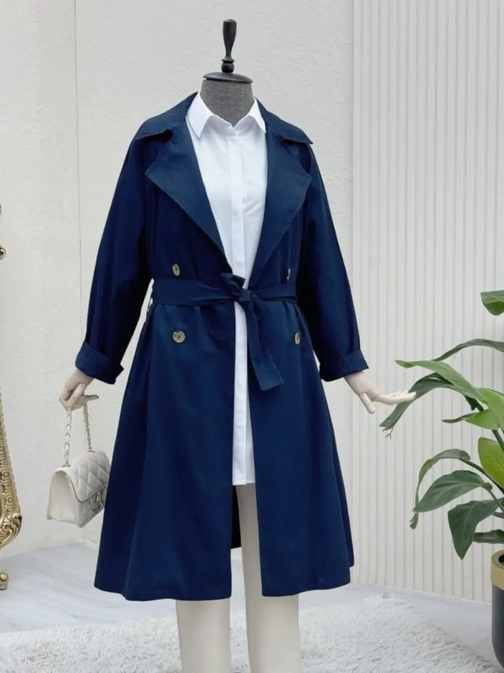 Astarı Çizgili Trençkot -Mavi
