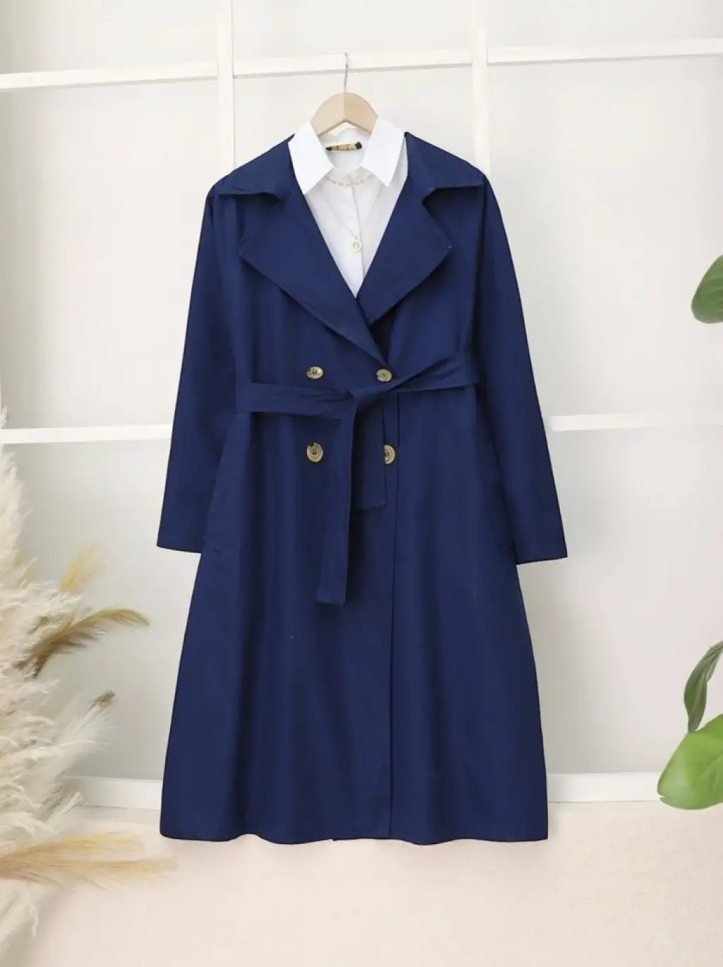 Astarı Çizgili Trençkot -İndigo