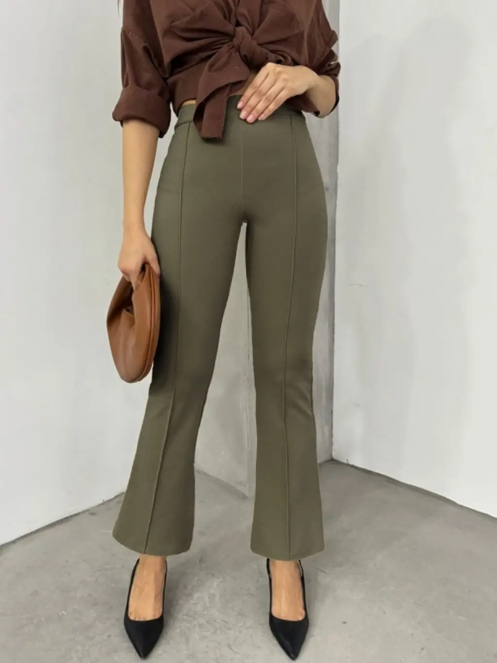 Kadın Yüksek Bel şerit Detaylı Ispanyol Paçalı Dalgıç Pantolon
