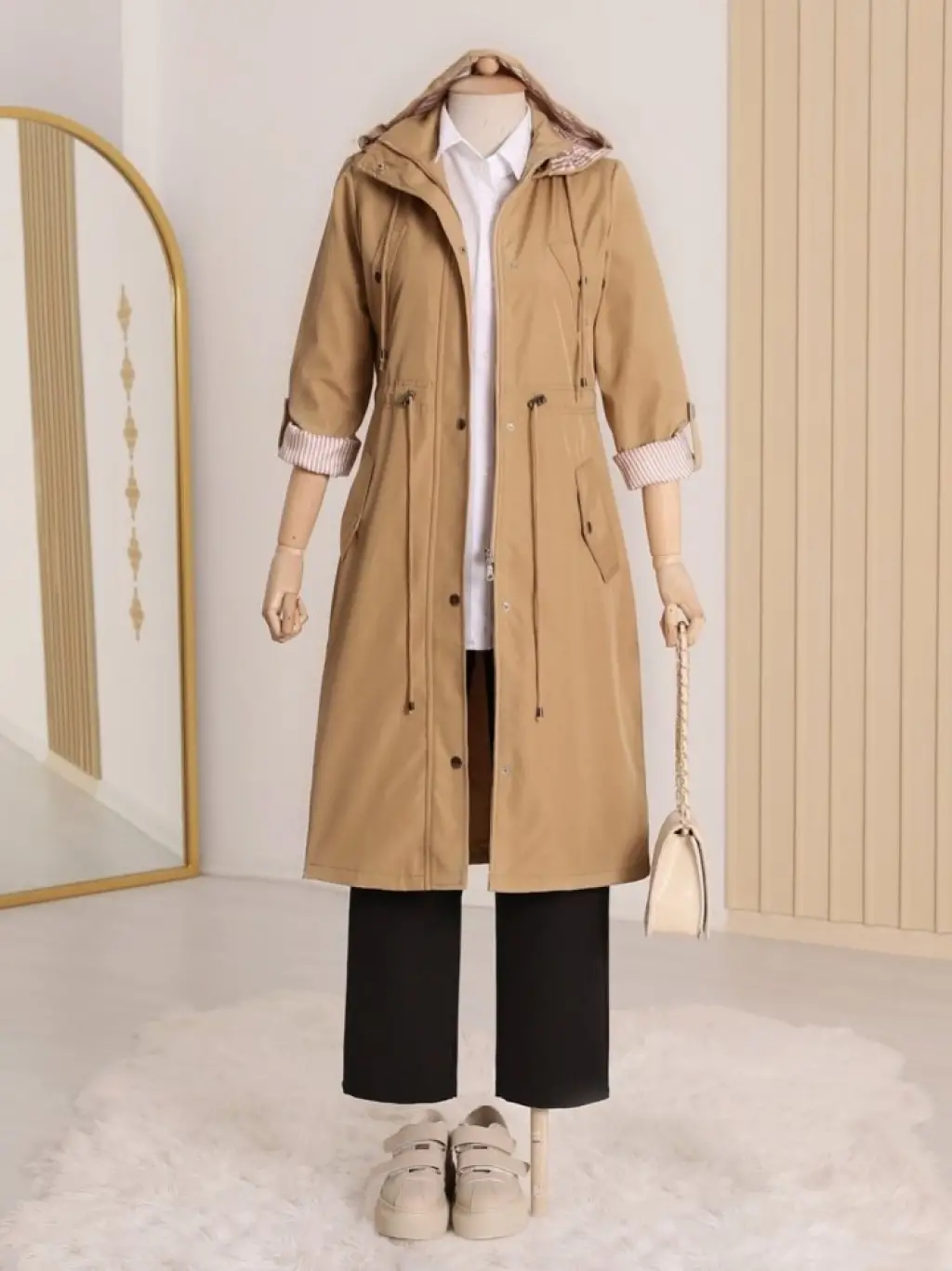Bolero Detaylı Kemerli Araboy Trençkot -Vizon