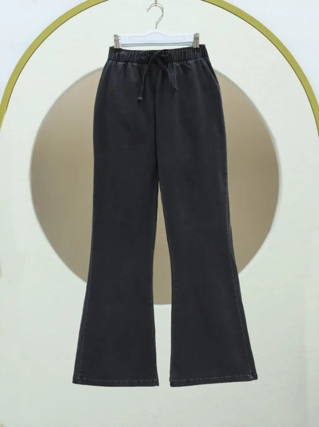 İspanyol Paça Bağcık Detaylı Kot Pantolon -Füme