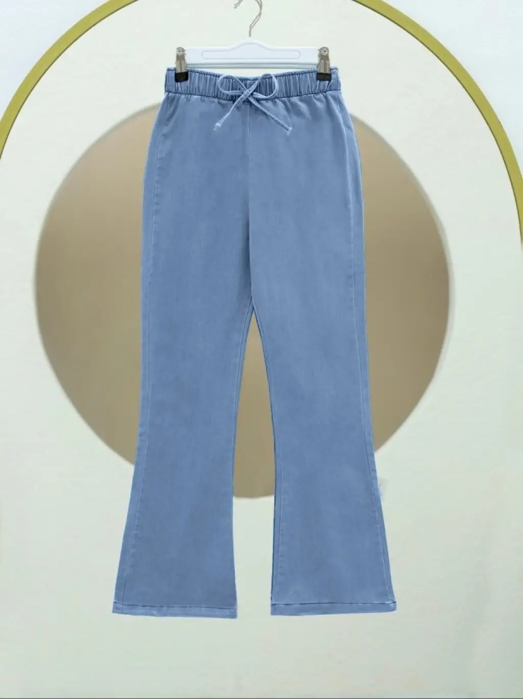 İspanyol Paça Bağcık Detaylı Kot Pantolon -Mavi