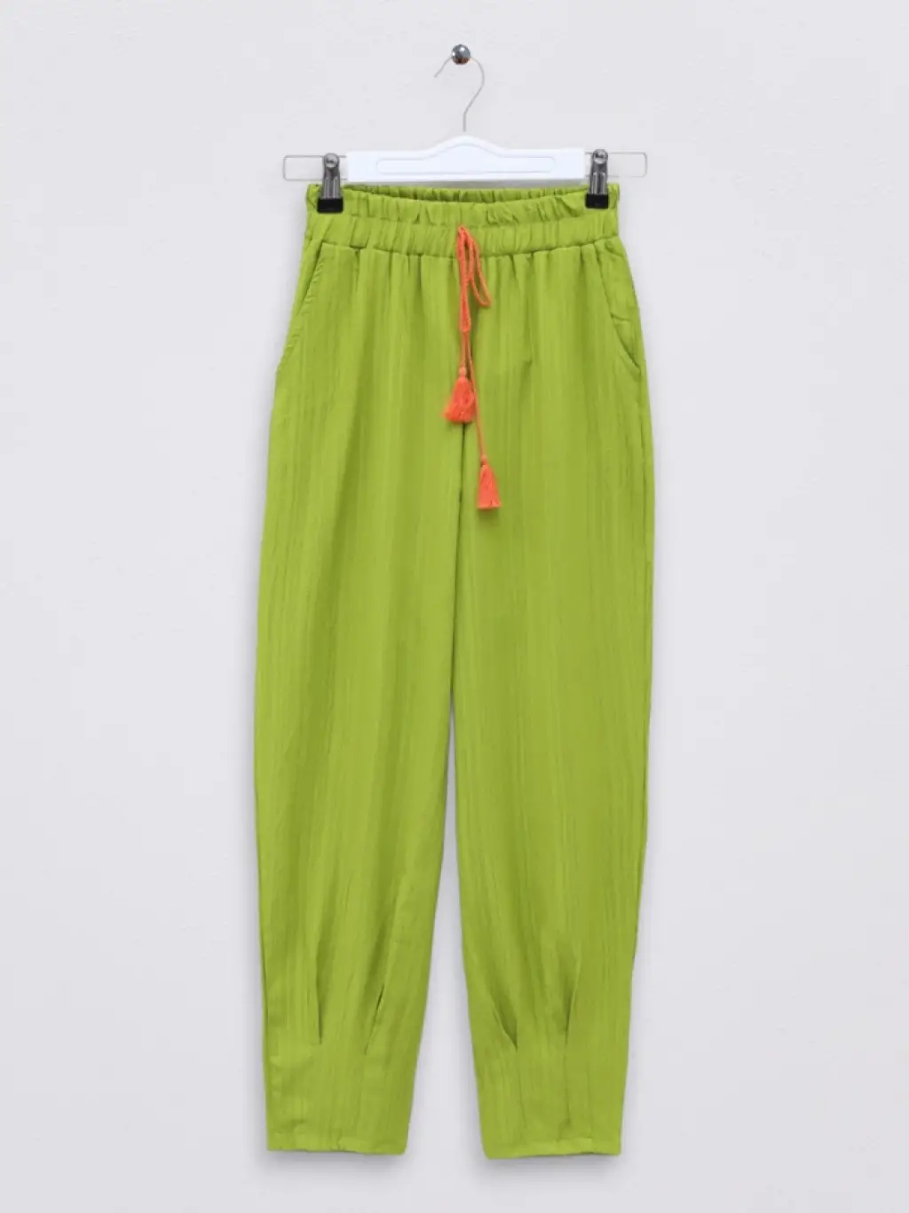 Paçası Pens Dikişli Bağcık Detaylı Pantolon -F.Yeşili