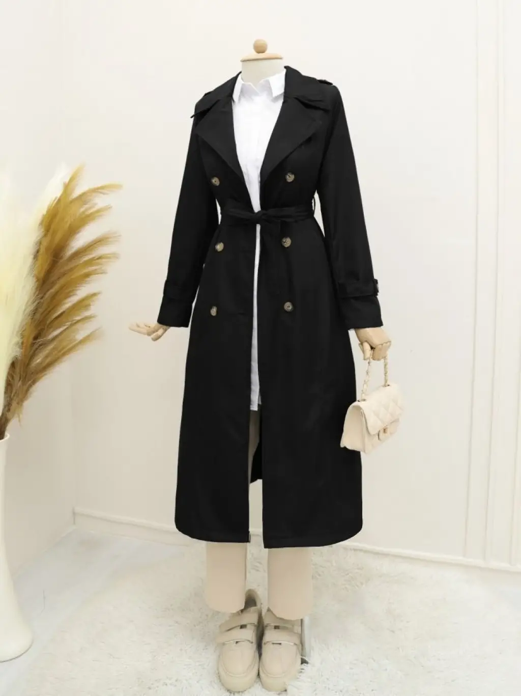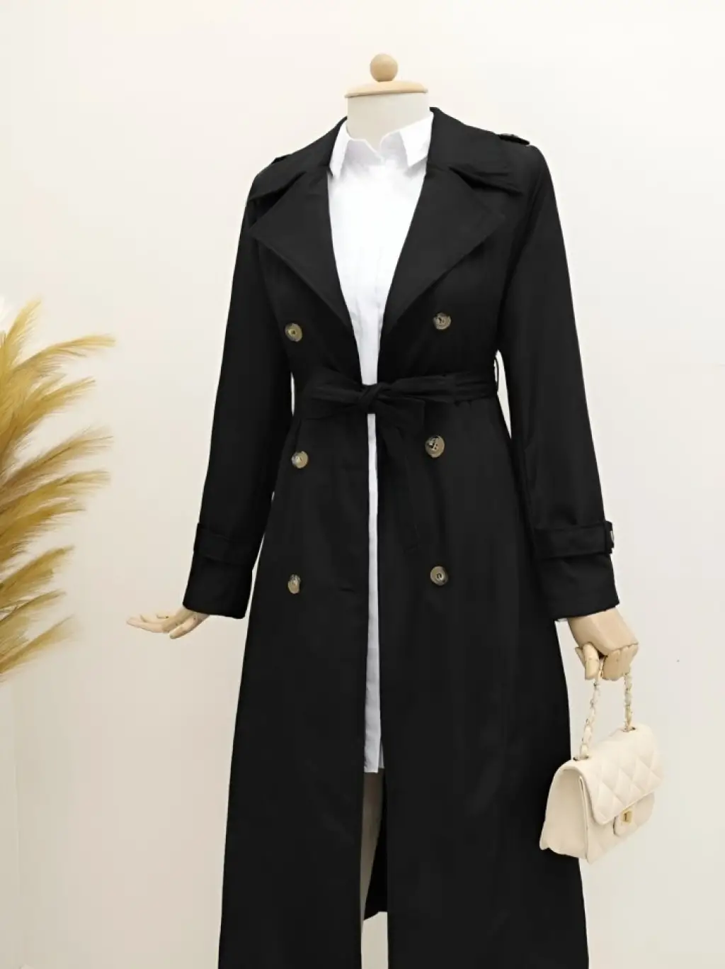 Astarlı Kemerli Trenckot -Siyah