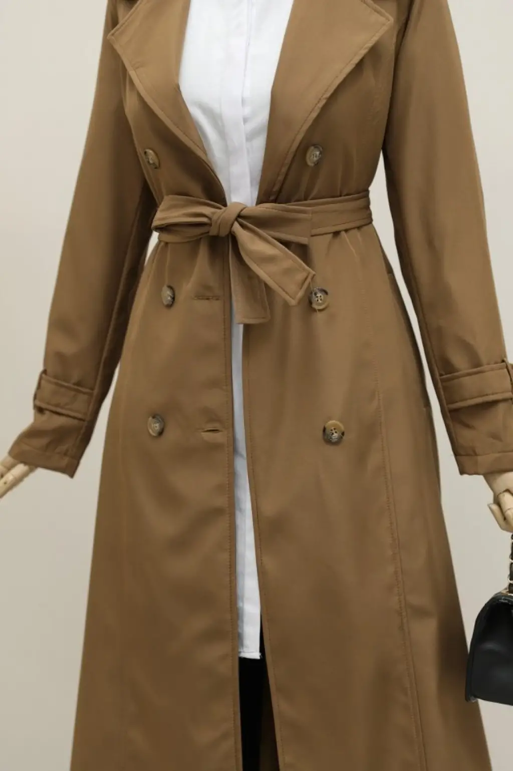 Astarlı Kemerli Trenckot -Vizon