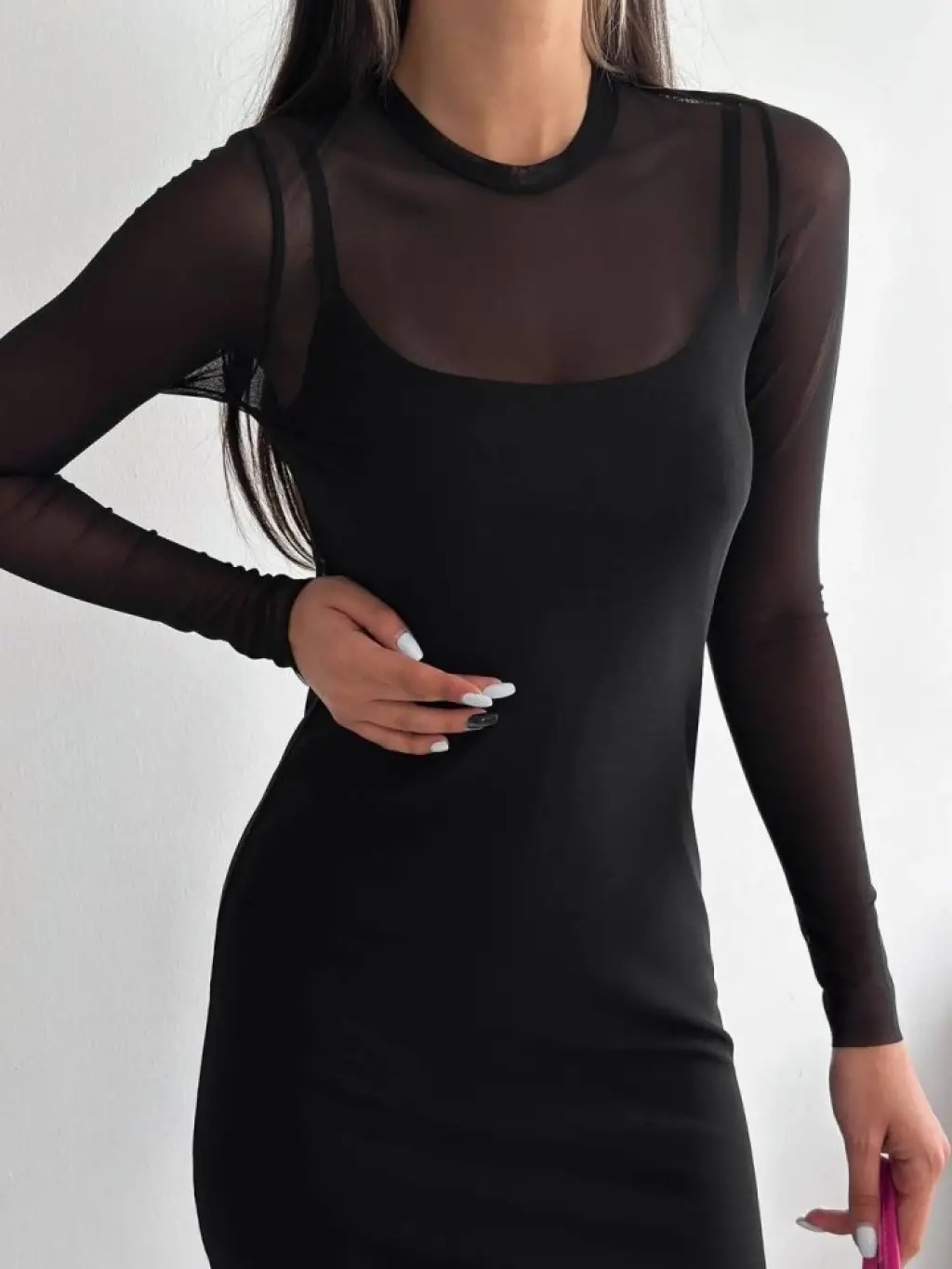 Tül Elbise Atlet Takım -Siyah