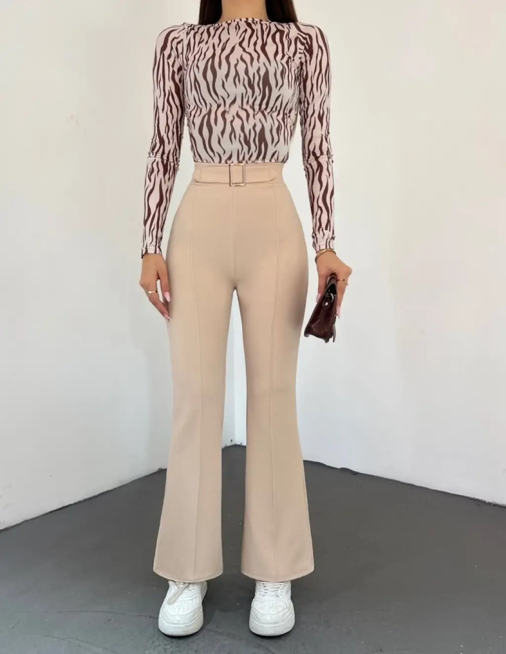 Bej Yüksek Bel Kumaş Pantolon 6650