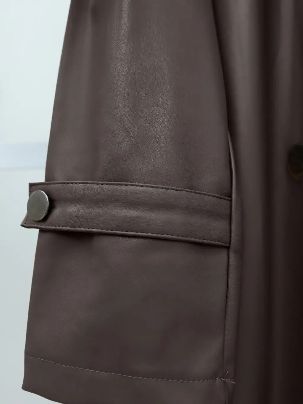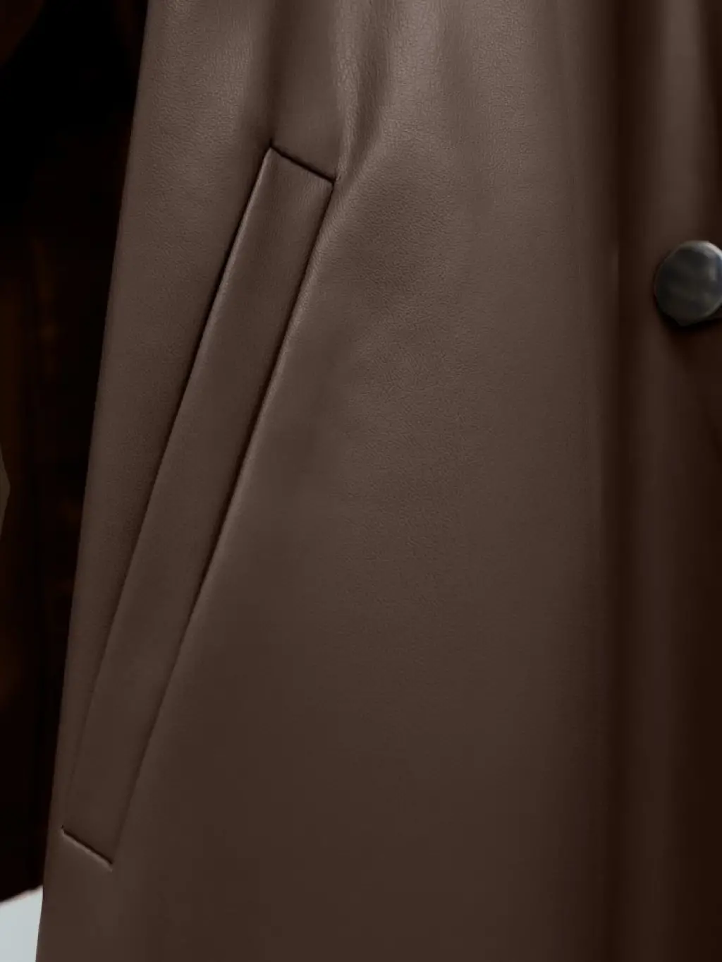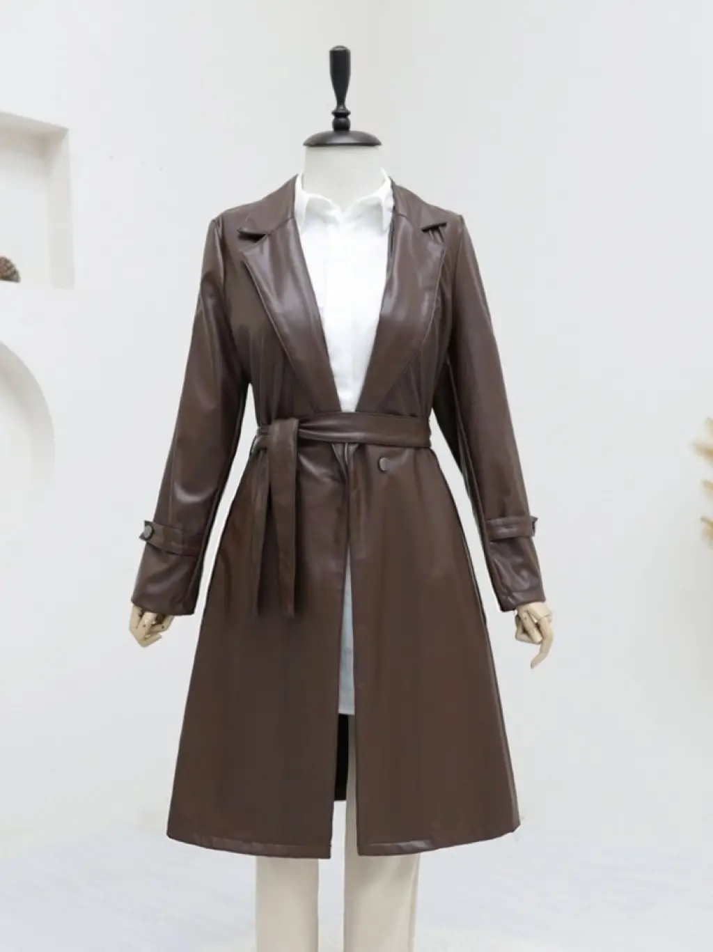 Kemerli Yan Cepli Deri Trenckot -Kahve