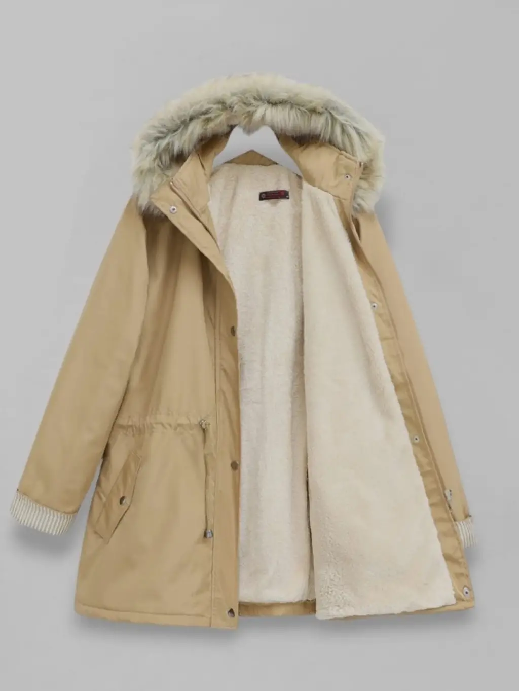 Kürklü Çıkma Kapşonlu İçi Peluşlu Mont -Vizon