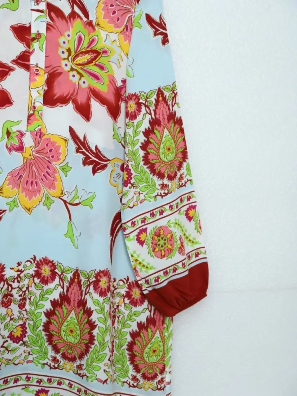 Çiçek Desenli Yarım Düğmeli Pamuk Viskon Tunik -Kiremit