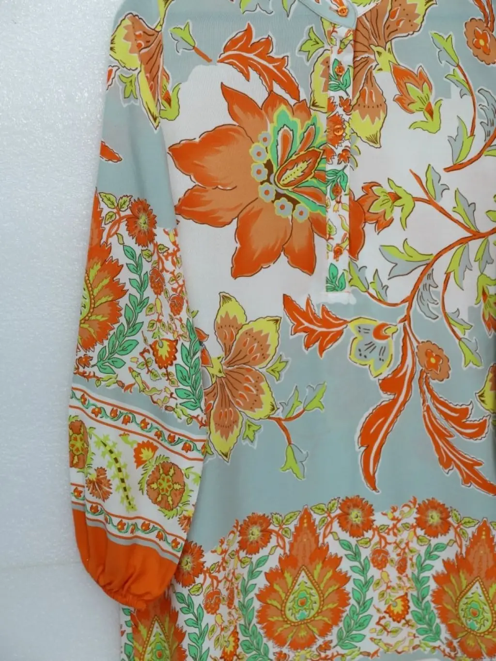 Çiçek Desenli Yarım Düğmeli Pamuk Viskon Tunik -Turuncu