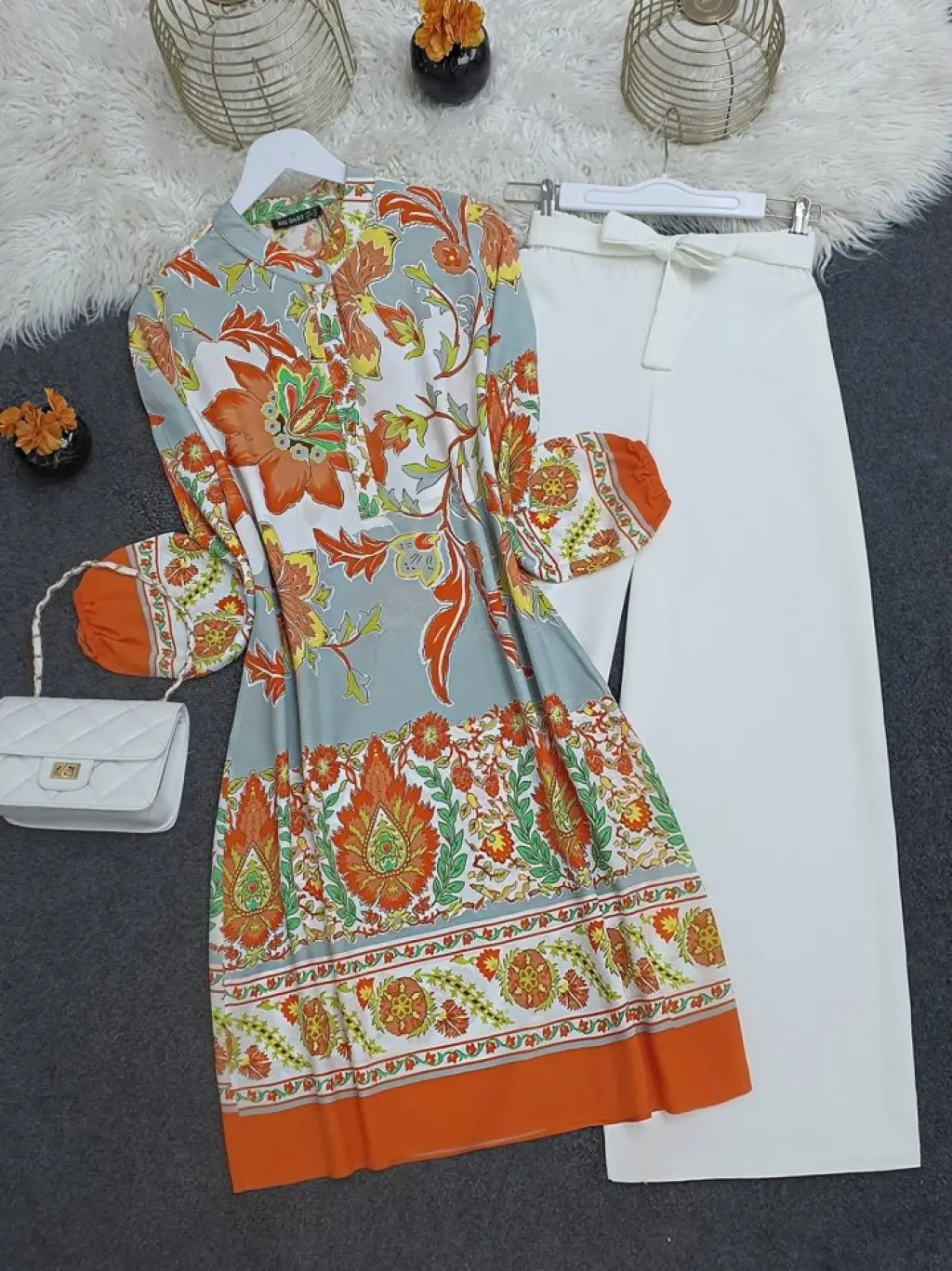 Baskılı Uzun Tunik -Turuncu